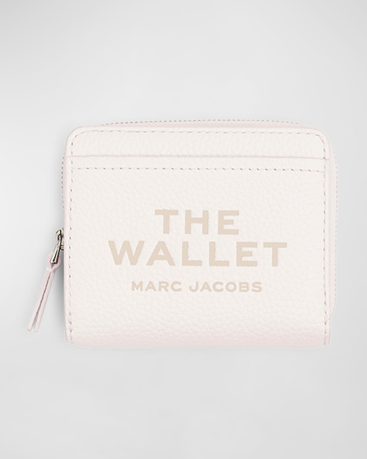 - Marc Jacobs compact wallet in leather - Bifold construction; snap closure - Exterior, zip pouch and two slip pockets - Interior, one bill compartment and four card slots - Approx. 3.7"H x 4.3"D - Imported
