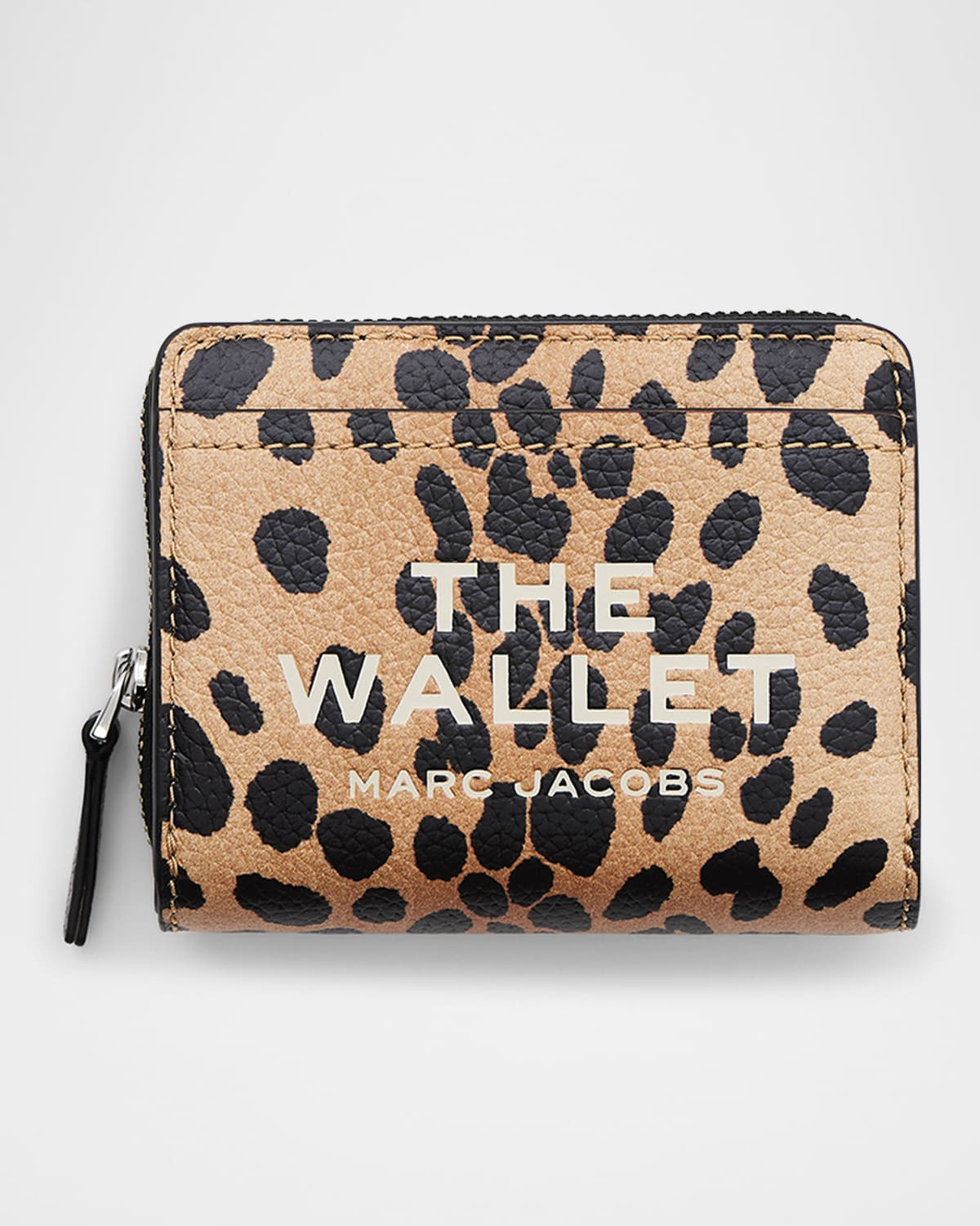- Marc Jacobs compact wallet in cheetah-printed leather - Flap top with snap closure - Interior, four card slots, two slip pockets, one bill compartment, one zip pocket - Lining: Polyester - Approx. 3.5"H x 1.2"W - Imported