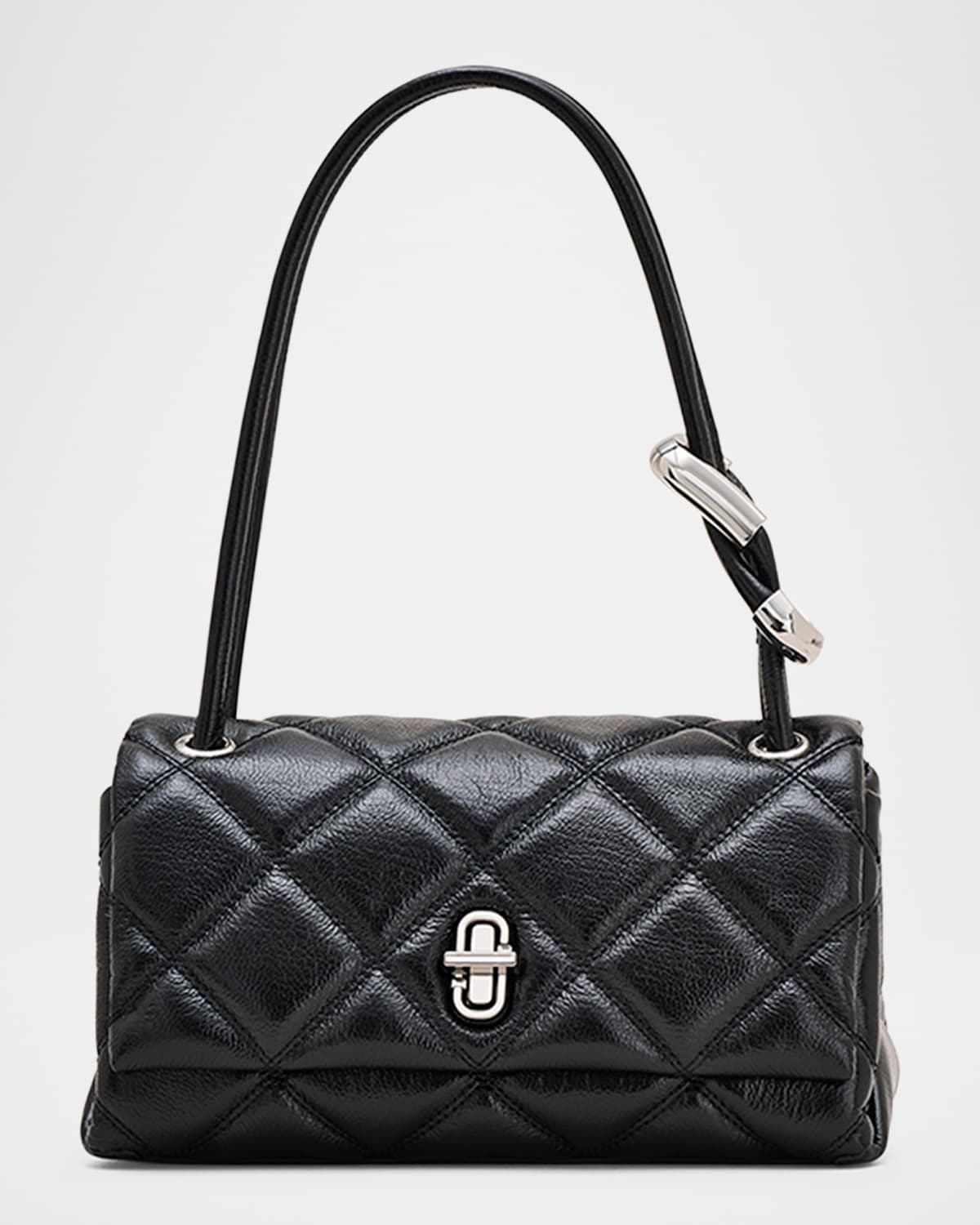 - Discover the elevated mini dual bag reinterpreted for deluxe over-the-shoulder styling. Luxuriously crafted in quilted full-grain leather for a classically sophisticated plush texture, this freshly debuted instant icon features a refined metal turn-lock closure, our handle-adorning signature dual hardware, and an elongated leather top handle for elegant hand-held or over-the-shoulder styling. - Marc Jacobs quilted leather shoulder bag - Shoulder strap with knot hardware, 4.7" drop - Flap top with J turn-lock closure - Interior, one zip pocket - Lining: Polyester - Approx. 4.3"H x 8.5"W x 4.1"D - Spot clean - Imported