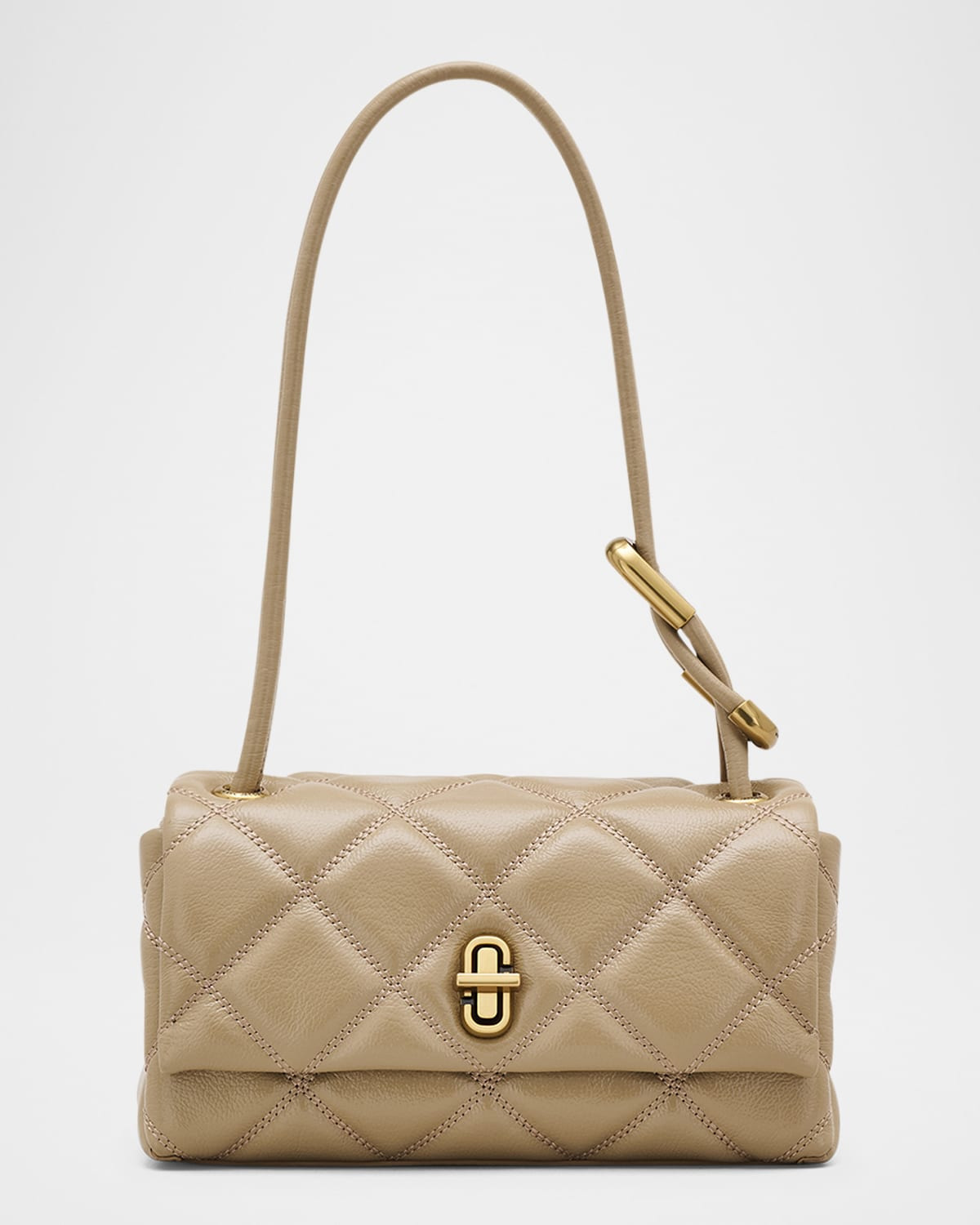 - Discover the elevated mini dual bag reinterpreted for deluxe over-the-shoulder styling. Luxuriously crafted in quilted full-grain leather for a classically sophisticated plush texture, this freshly debuted instant icon features a refined metal turn-lock closure, our handle-adorning signature dual hardware, and an elongated leather top handle for elegant hand-held or over-the-shoulder styling. - Marc Jacobs quilted leather shoulder bag - Shoulder strap with knot hardware, 4.7" drop - Flap top with J turn-lock closure - Interior, one zip pocket - Lining: Polyester - Approx. 4.3"H x 8.5"W x 4.1"D - Spot clean - Imported