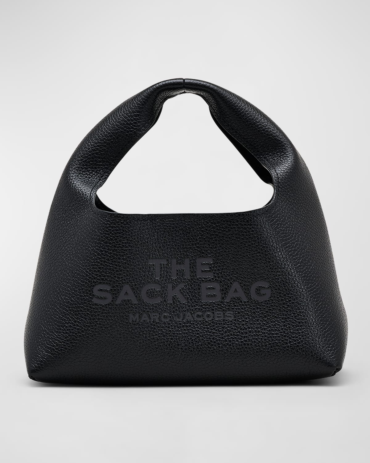 - Marc Jacobs leather top handle bag with logo across front - Top handle, 4.7" drop - Open top with magnetic closure - Interior, zip pouch - Approx. 5.3"H x 9.4"W x 5.1"D - Imported