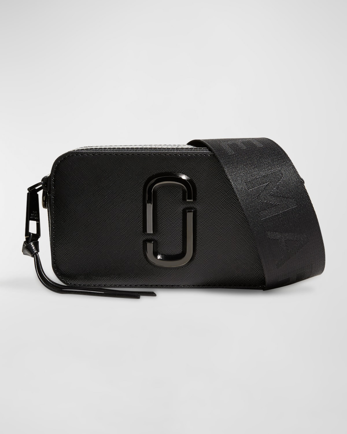 - The Marc Jacobs camera bag in split cowhide leather with polyurethane coating. - Removable, adjustable logo web crossbody strap; 17.5"-27" convertible strap drop. - Can be worn over the shoulder or across the body. - Dual zip-around top closure with tassel pulls. - Exterior, double J detail at center front. - Two interior compartments; interior wall pocket; slip pocket at back. - 4.1"H x 7.2"W x 2.2"D. - Item weight: 1.3lbs. - Imported.