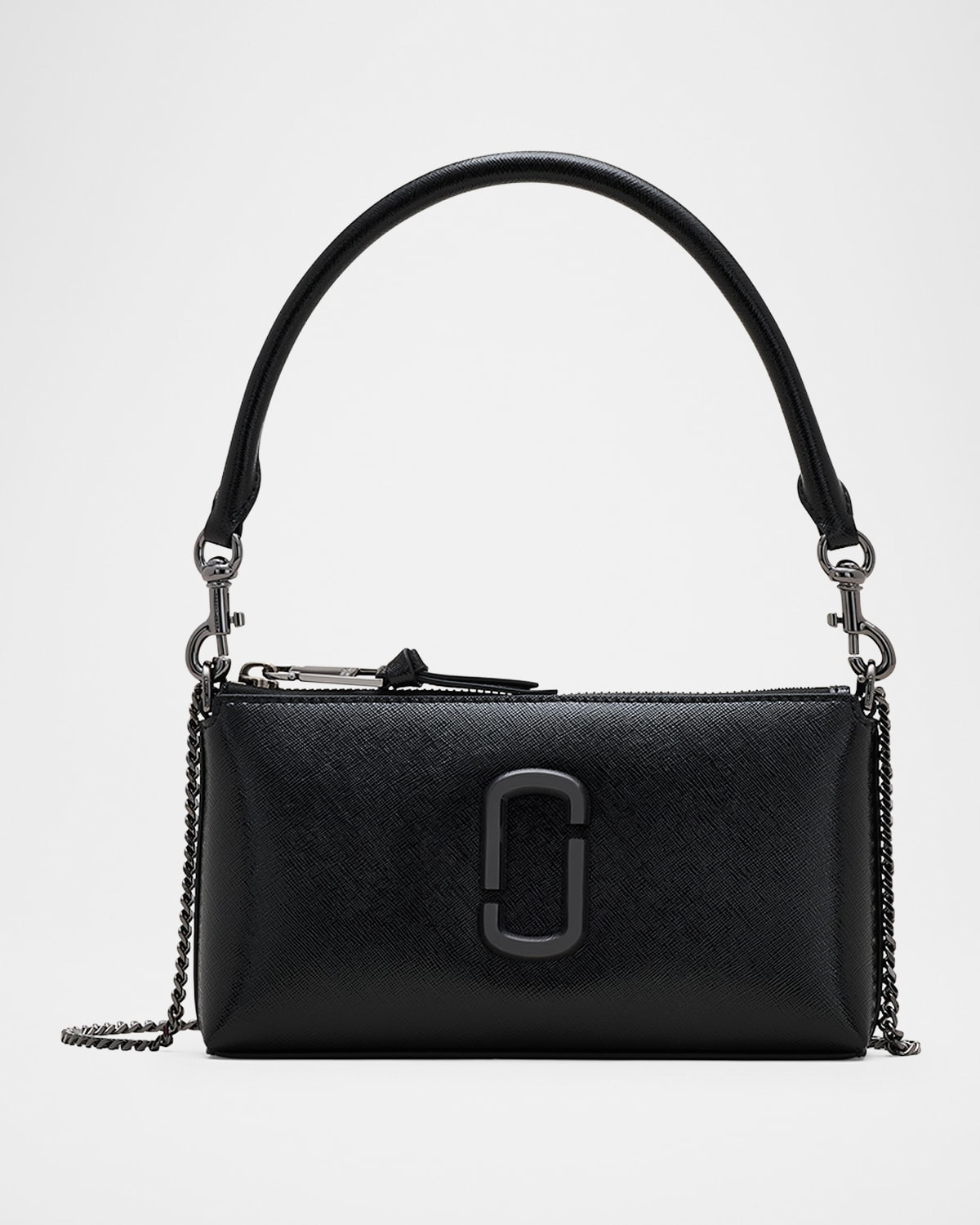 - This slim, rectangular pochette is crafted in textural saffiano leather, featuring a tonal DTM J Marc hardware seal for a touch of sophistication and modernity. With three internal card slots and an effortless top-zip closure, this silhouette includes an interchangeable crossbody chain strap and a structured leather shoulder strap for versatile wear. Go strap-free for a sleek pouch option- perfect for effortless organization and refined elegance. - Marc Jacobs "Snapshot DTM" utility pochette shoulder bag in saffiano leather - Detachable shoulder strap, 6.7" drop - Detachable, chain crossbody strap, 43.3"L - Can be worn as a shoulder or crossbody bag - Zip top closure - Interior, three card slots - Lining: Polyester - Approx. 4.7"H x 8.7"W x 1.6"D - Spot clean - Imported