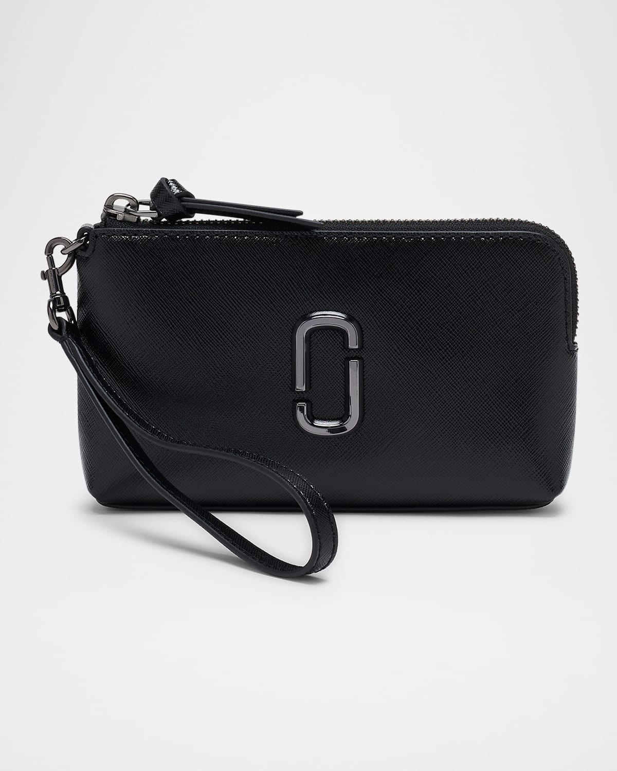 - Marc Jacobs "The Wristlet" pouch in calf leather - Features tonal hardware - Detachable wrist strap - Polyester lining - Zip top closure - Approx. 4"W x 1"D - Spot clean - Imported