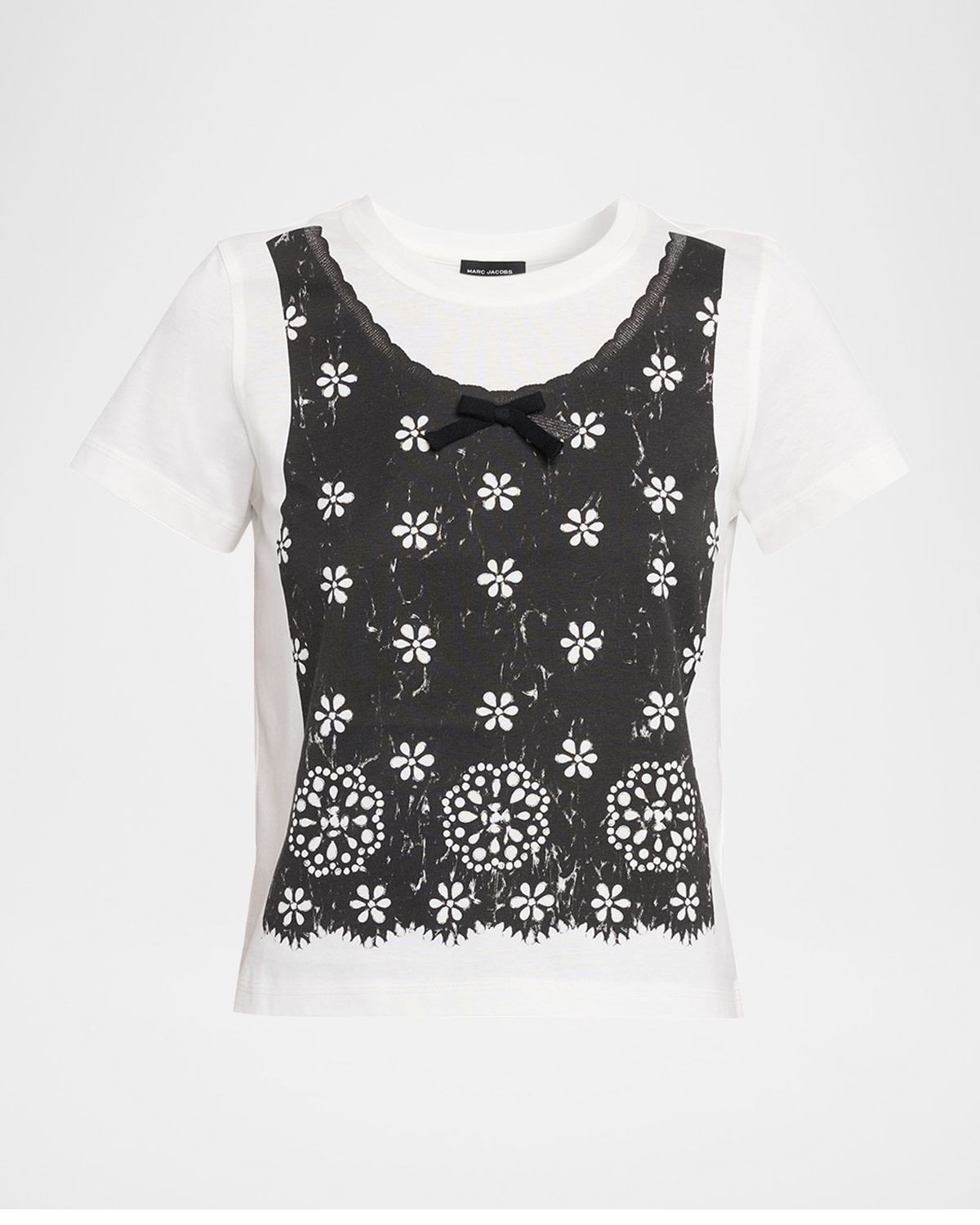 - Marc Jacobs printed trompe-l'oeil tee - Crew neckline - Short sleeves; approx. 6.7"L - Slim fit - Hem falls to the hip - Pullover style - Cotton - Dry clean - Imported