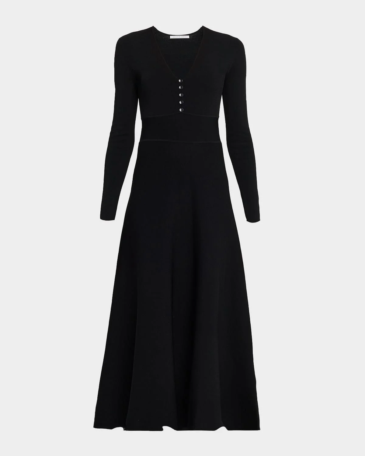 MARIA MCMANUS compact knit maxi dress featuring a defined waistband & nbsp; V neckline; button-placket & nbsp; Long sleeves Slim silhouette Full length Slipover style & nbsp; Viscose/Elite® polyester Dry clean or hand wash Imported SIZE & FITModel measurements: 5 & apos;10" tallModel is wearing a US size 4/Small