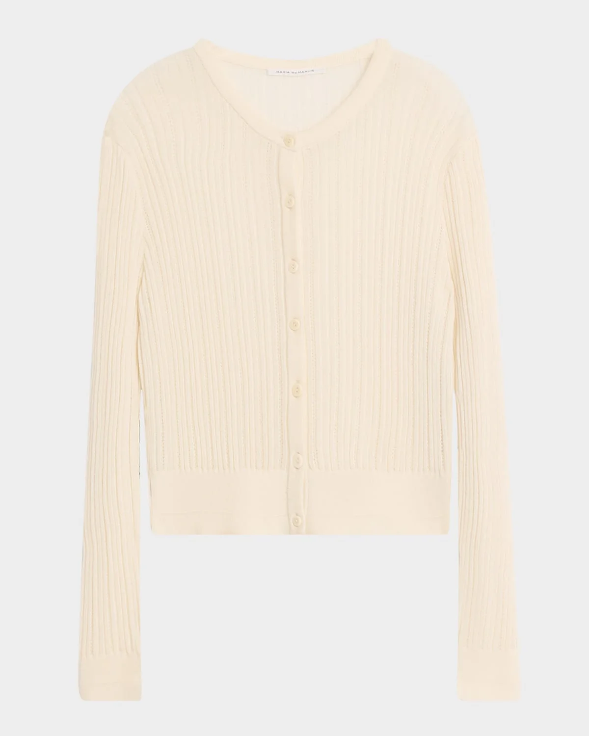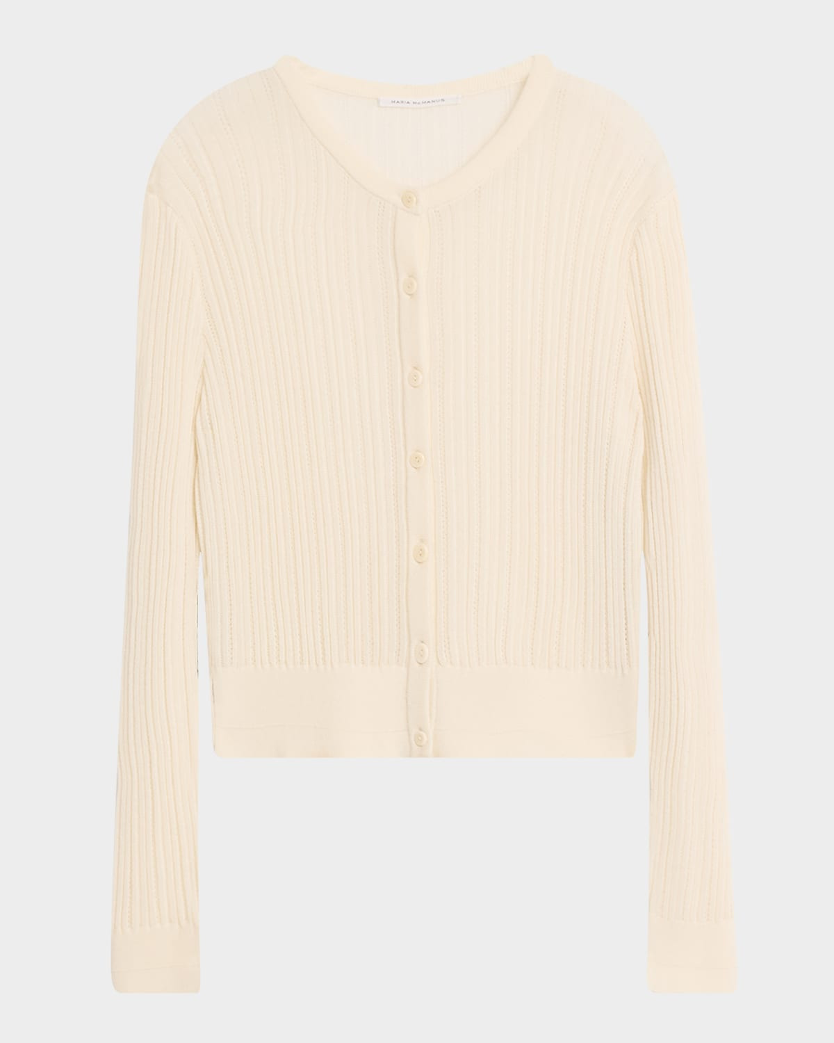 Ribbed pointelle-knit merino wool cardigan Ivory