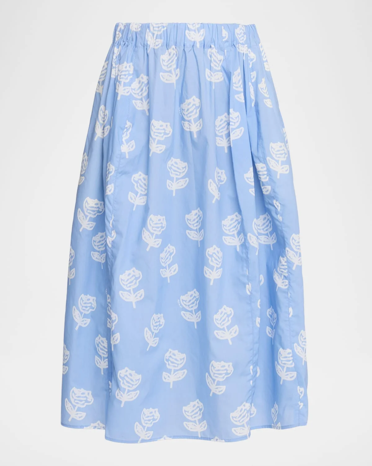 - Marni skirt featuring a floral print and an elasticized gathered waist - High waist - Hem falls below the knee - A-line silhouette - Pull-on style - Cotton - Lining: Cotton - Made in Italy