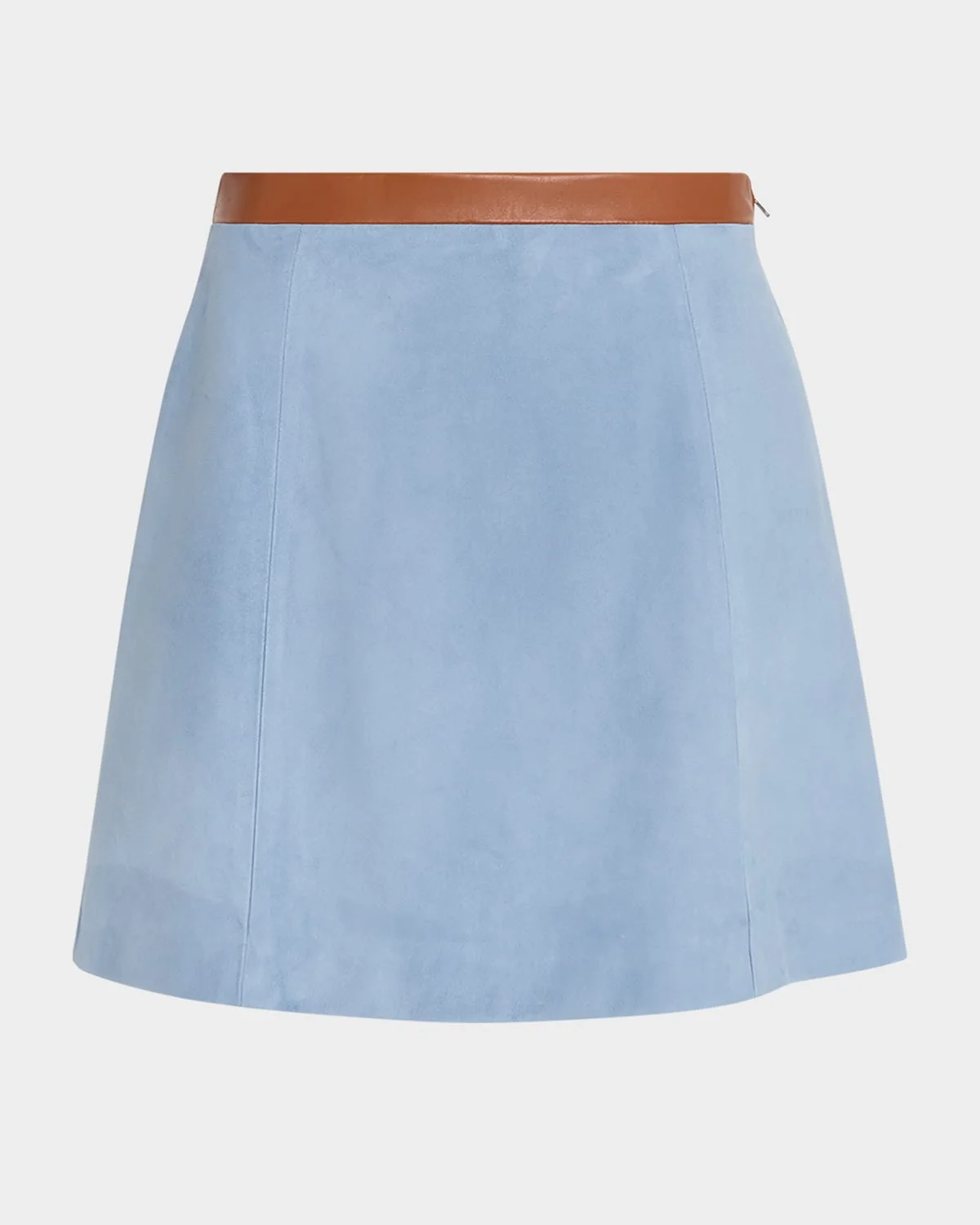 LIGHT BLUE SUEDE FLARED MINI SKIRT