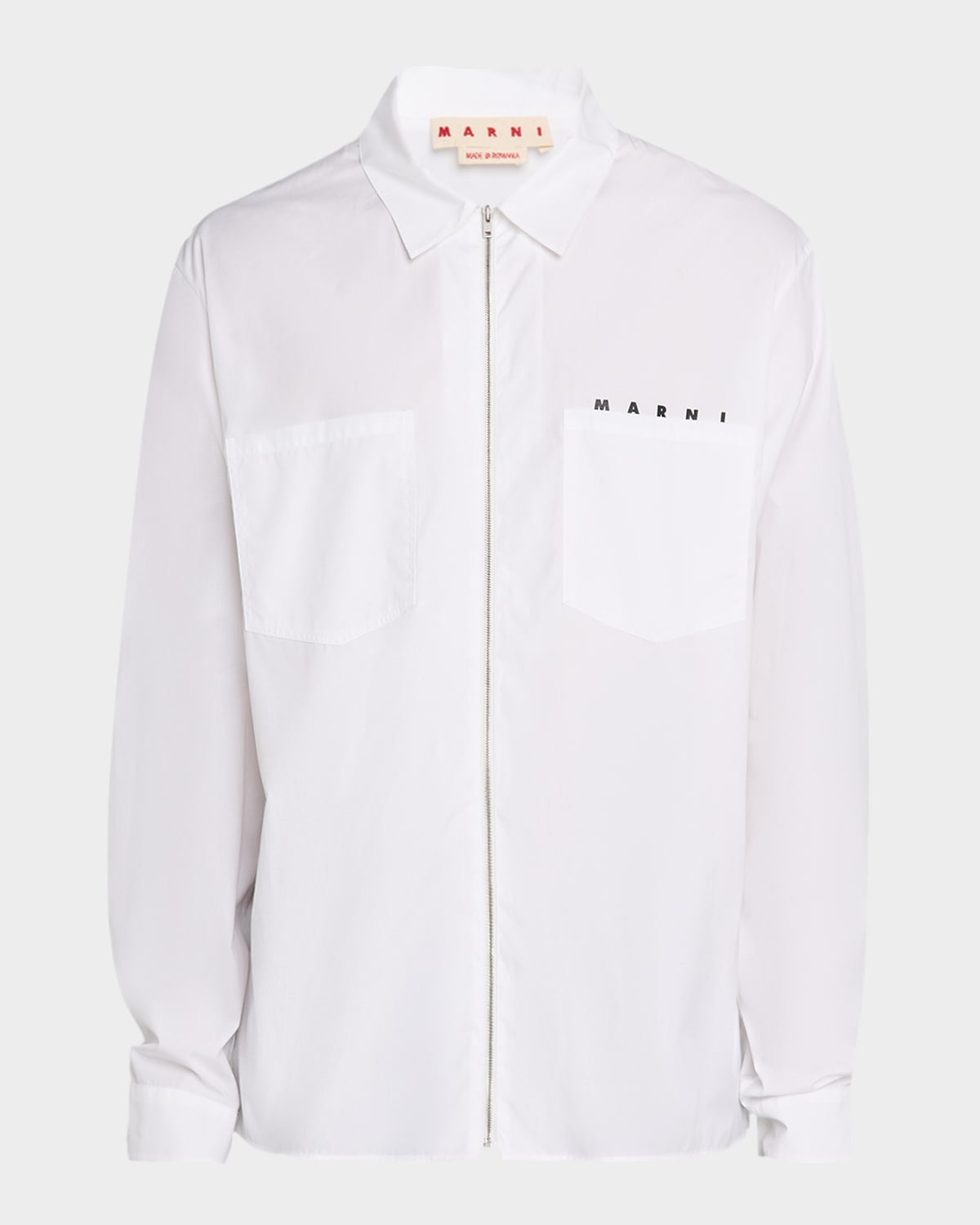 - Marni shirt in solid poplin - Spread collar - Zip closure - Two chest patch pockets - Logo print at chest - Long sleeves - Relaxed fit - Cotton - Imported - Model is 6'1"/185cm.