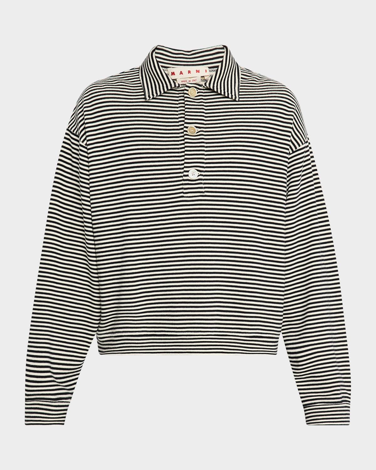 - Marni sweatshirt adorned with classic horizontal sailor stripes - Label on the back - Spread collar - Three-button placket - Long sleeves - Pullover style - Boxy fit - Cotton - Dry clean - Made in Italy