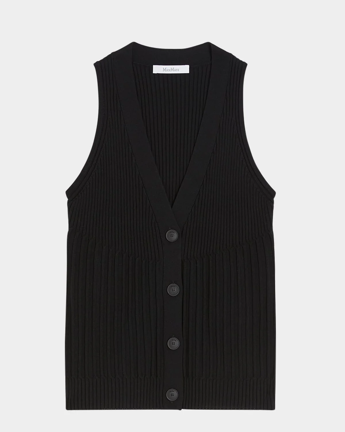 - Max Mara "Bimba" vest in a multi ribbed knit - V neckline; button front - Sleeveless - Fitted - Ribbed hem - Cotton/viscose - Hand wash - Imported