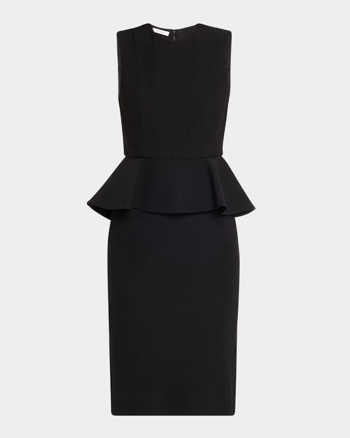 - Max Mara "Cosmos" peplum dress featuring a ruffle flounce waist - Round neckline - Sleeveless - Sheath silhouette - Knee length - Center-back vented hem - Back zip - Nylon/polyamide/cotton - Hand wash - Made in Romania