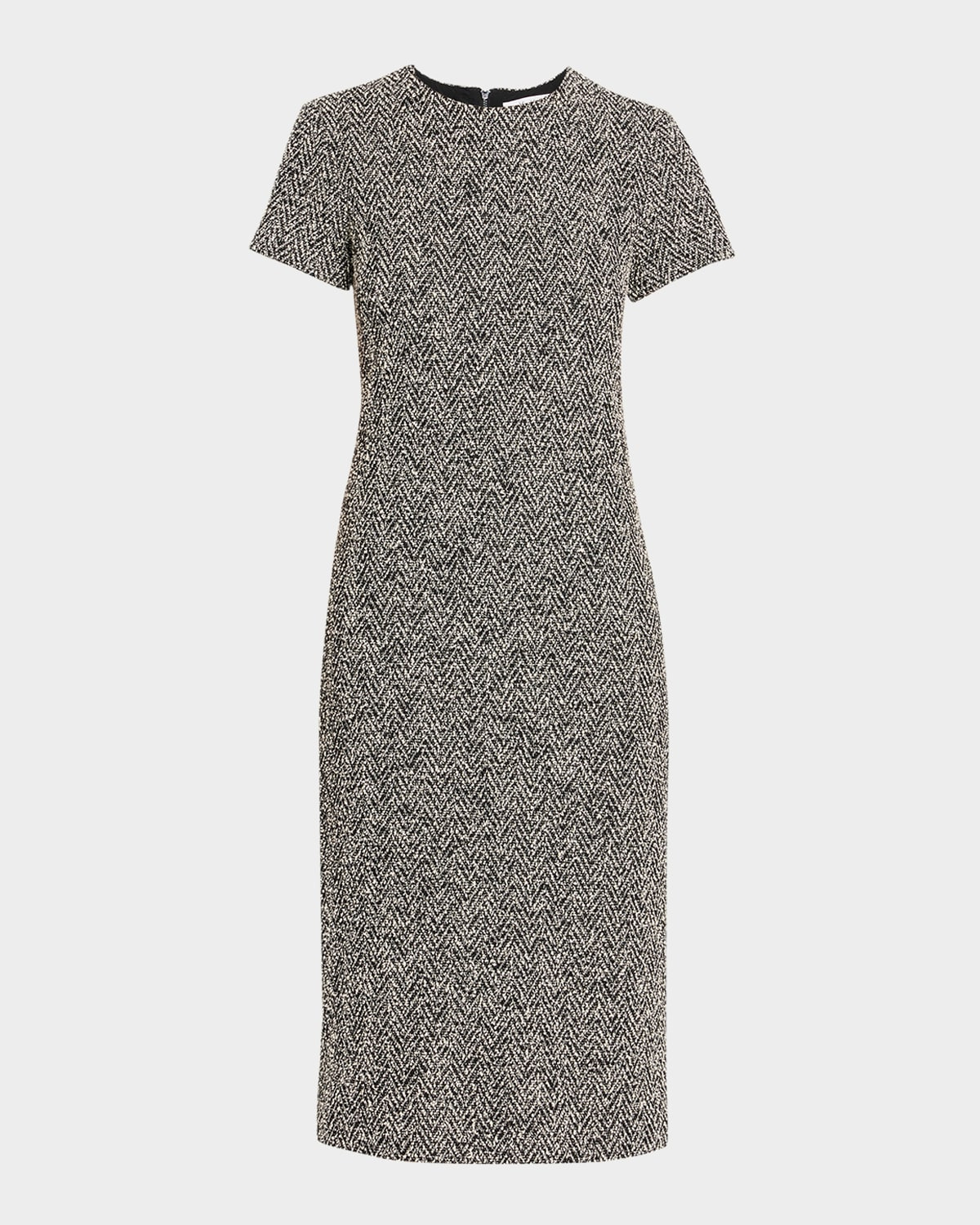 Giugno Short-Sleeve Herringbone Boucle Dress