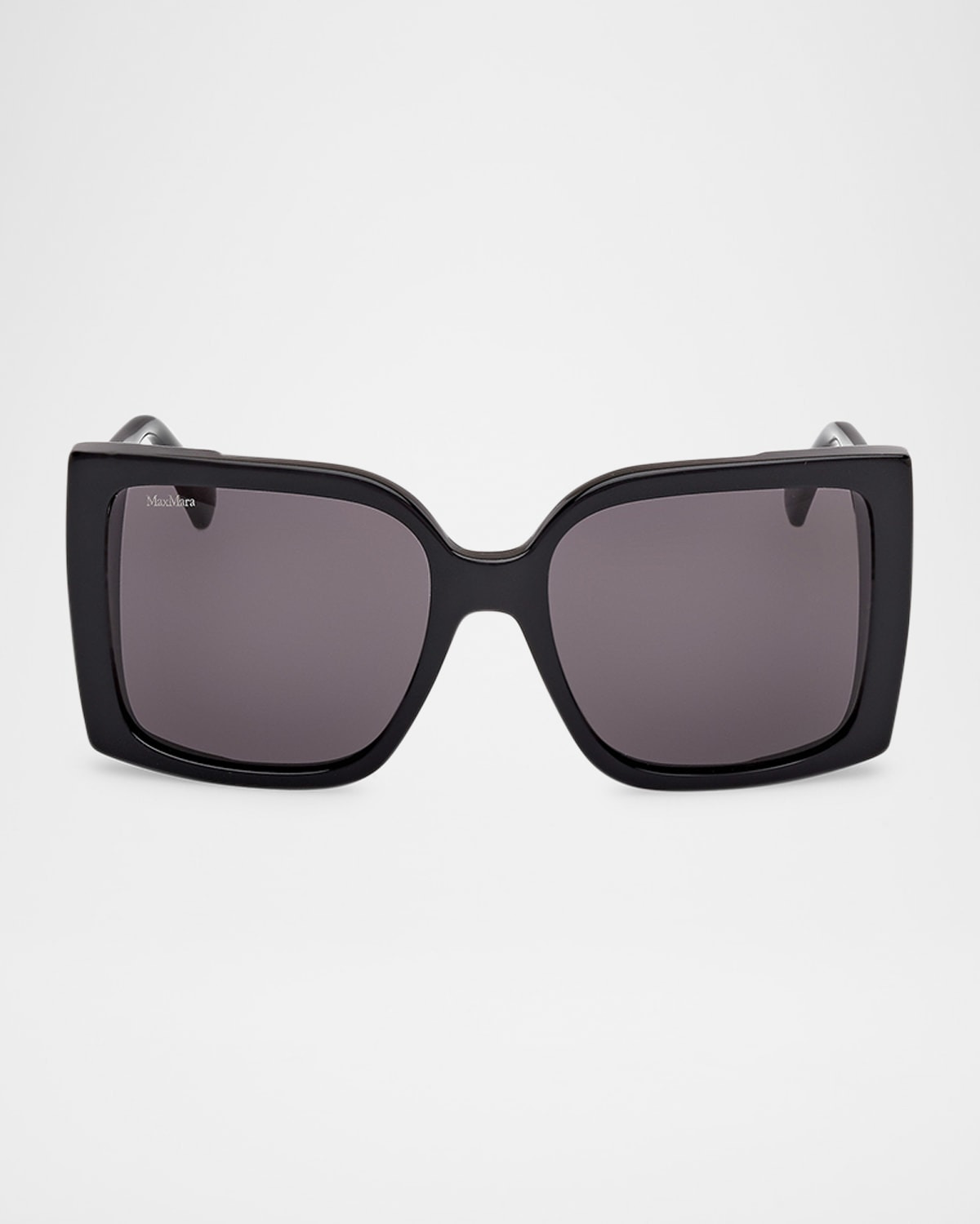 - Max Mara "Hinge" square sunglasses in acetate - Eye/bridge/temple (in mm): 56-18-135 - Solid color lenses - Saddle nose bridge - Logo lettering on the lens - Thin, tapered arms - 100% UVA/UVB protection - Imported - Proposition 65 warning for California residents