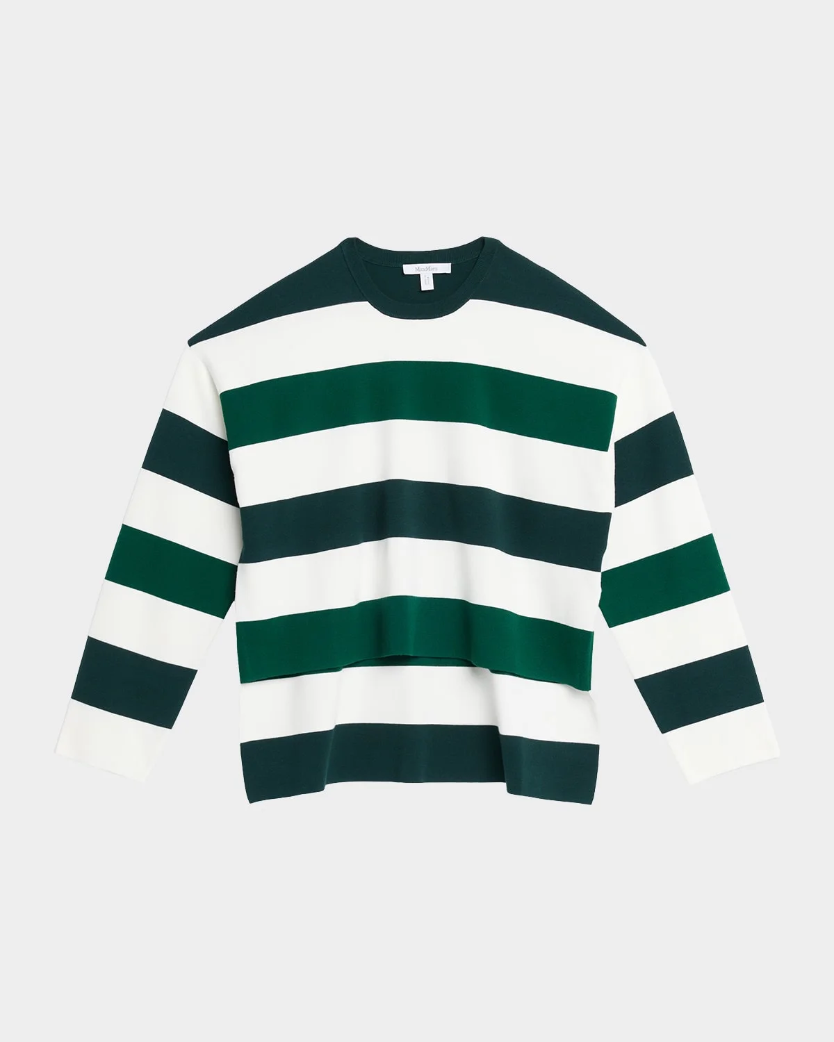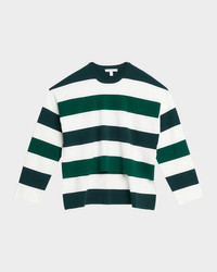 Max Mara "Jesone" sweater with multistriped intarsia Crew neckline Long sleeves Drop shoulders Boxy fit Cropped length Highlow hem; side slits Pullover style Viscose/polyester Hand wash Imported