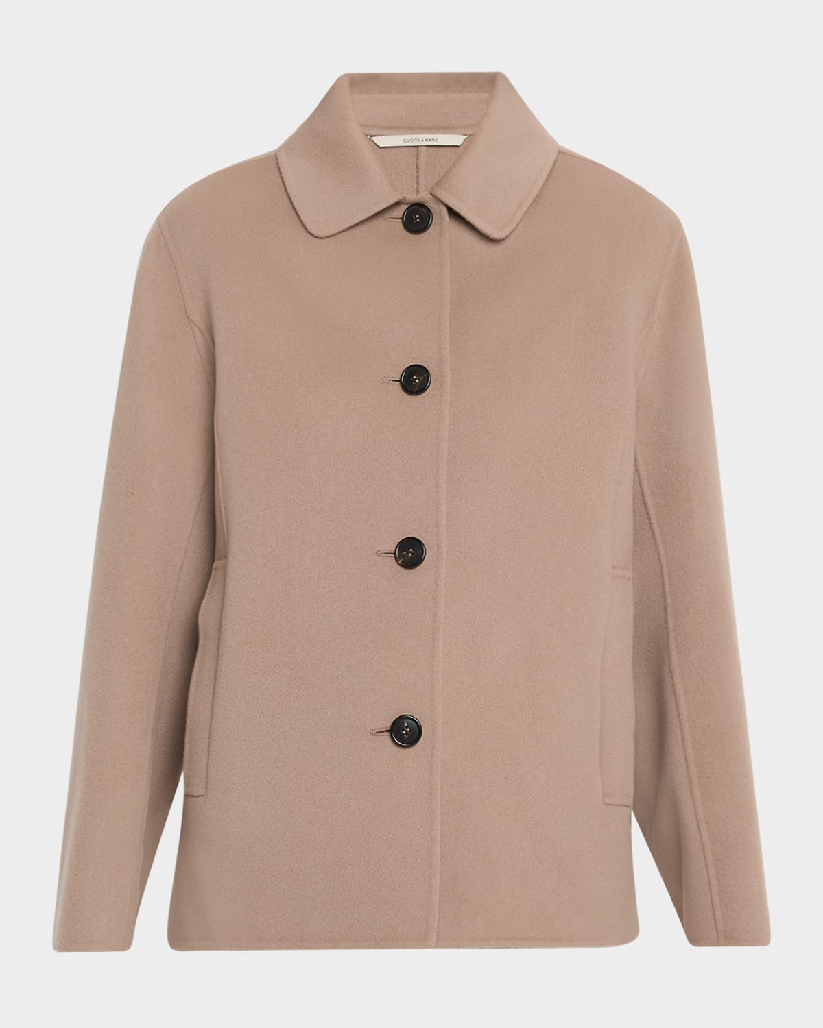 - Max Mara "Lily" shirt jacket in brushed wool - Point collar; button front - Long sleeves - Hip welt pockets - Straight fit - High-low hem; side slits - Wool - Lining: Silk - Dry clean - Imported