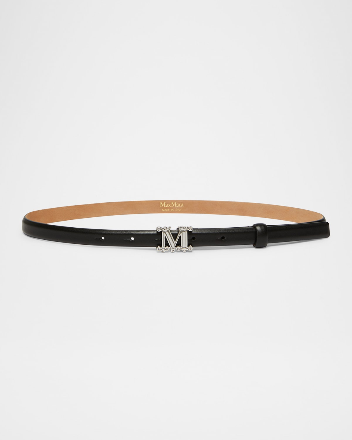 - Max Mara "M Graziata" belt in calf leather and silvertone hardware - Monogram buckle - Adjustable fit - Made in Italy