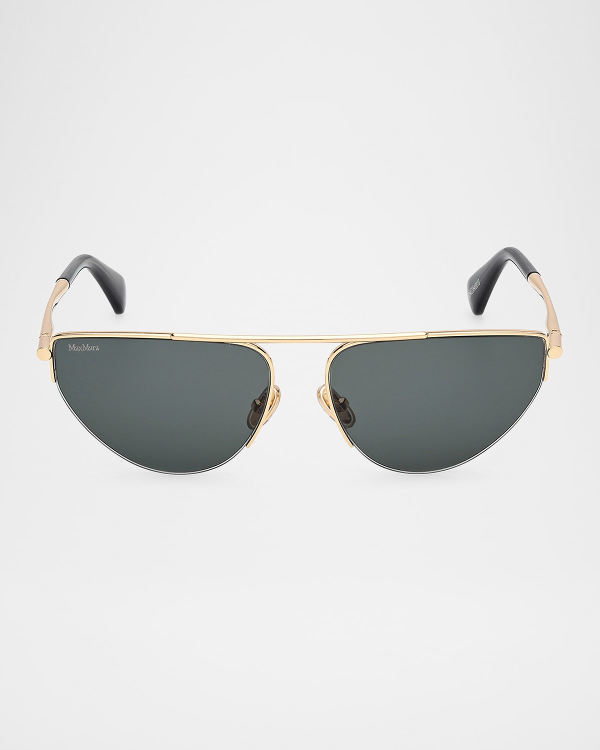- Max Mara cat-eye sunglasses in metal - Lens/bridge/temple (in mm): 58-15-135 - Solid lenses; logo on corner - Adjustable nose pads - Logo on temples - Thin, tapered arms - Capped earpieces - Spot clean - 100% UVA/UVB protection - Imported - Proposition 65 warning for California residents