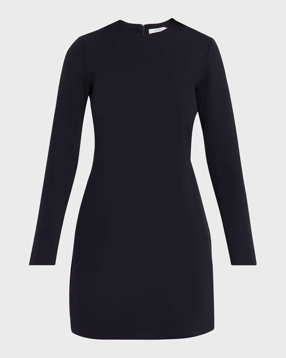 This Max Mara mini dress is cut from scuba jersey, finished with hand-sewn pick stitching along the neckline Jewel neckline Long sleeves Hem falls above the knee A-line silhouette Invisible back zipper Nylon/polyamide/elastane Hand wash Made in Romania