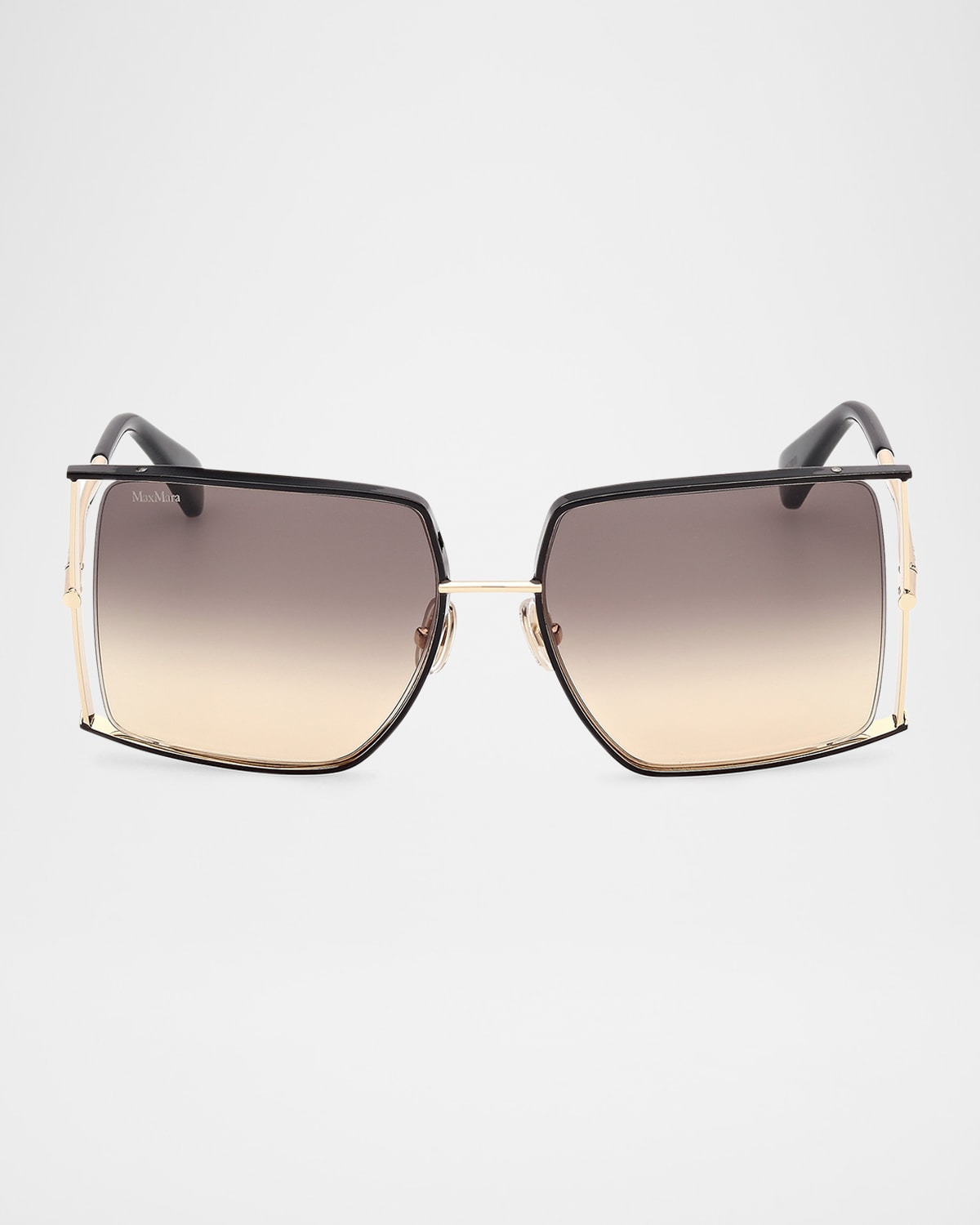 - Max Mara rectangle sunglasses in metal - Eye/bridge/temple (in mm): 58-17-135 - Photochromic, gradient lenses - Adjustable nose pads - Engraved logo at temples - Thin, tapered arms - Capped earpieces - Metal - Spot clean - 100% UVA/UVB protection - Imported - Proposition 65 warning for California residents