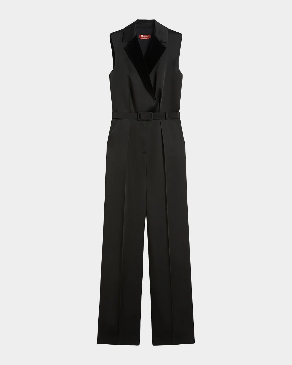Scalata Sleeveless Peak-Lapel Satin Jumpsuit