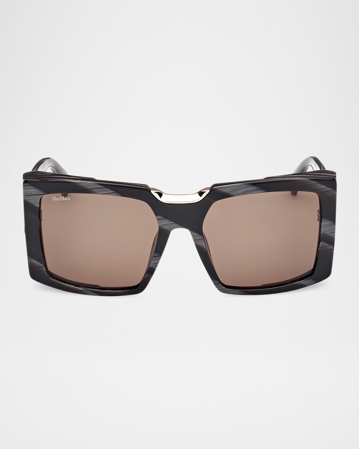 - Max Mara "Spark 6" rectangle sunglasses in acetate - Eye/bridge/temple (in mm): 55-18-135 - Solid color lenses - Saddle nose bridge - Logo at the temples - Thin, tapered arms - Acetate - Spot clean - 100% UVA/UVB protection - Imported - Proposition 65 warning for California residents