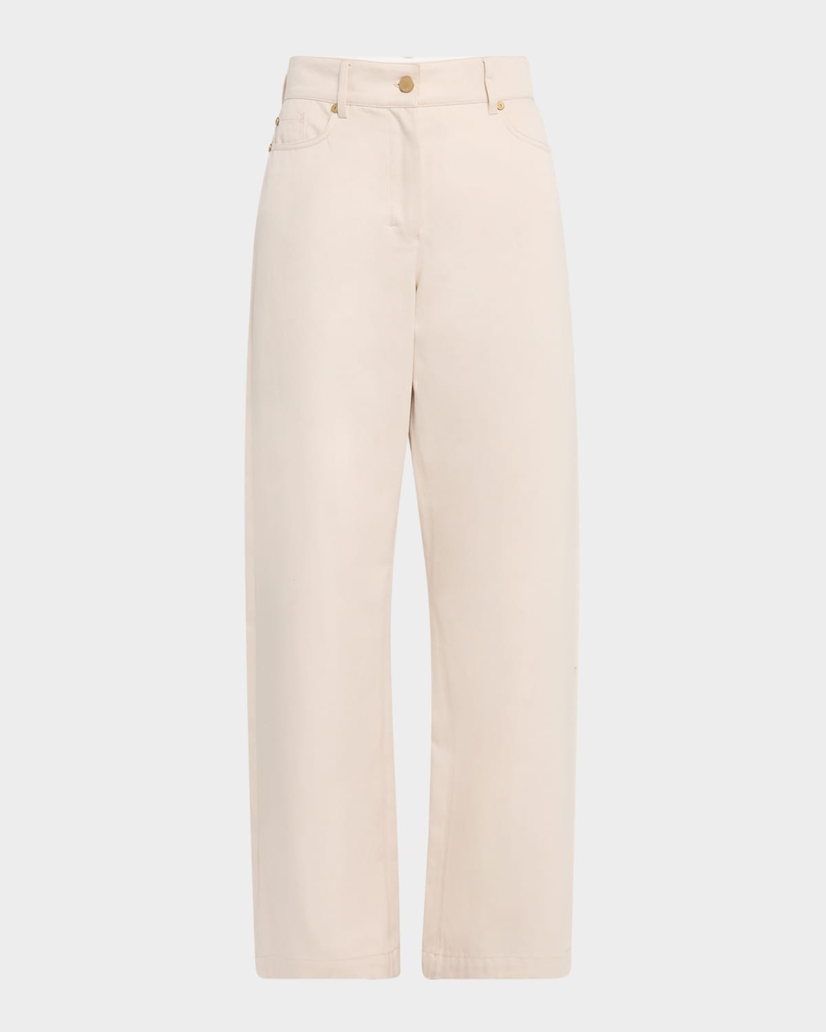 - Max Mara "Valeria" jeans with back welt pockets - Mid rise sits high on hip - Five-pocket style - Straight legs - Ankle length - Buton/zip fly; belt loops - Cotton - Machine wash cold - Imported