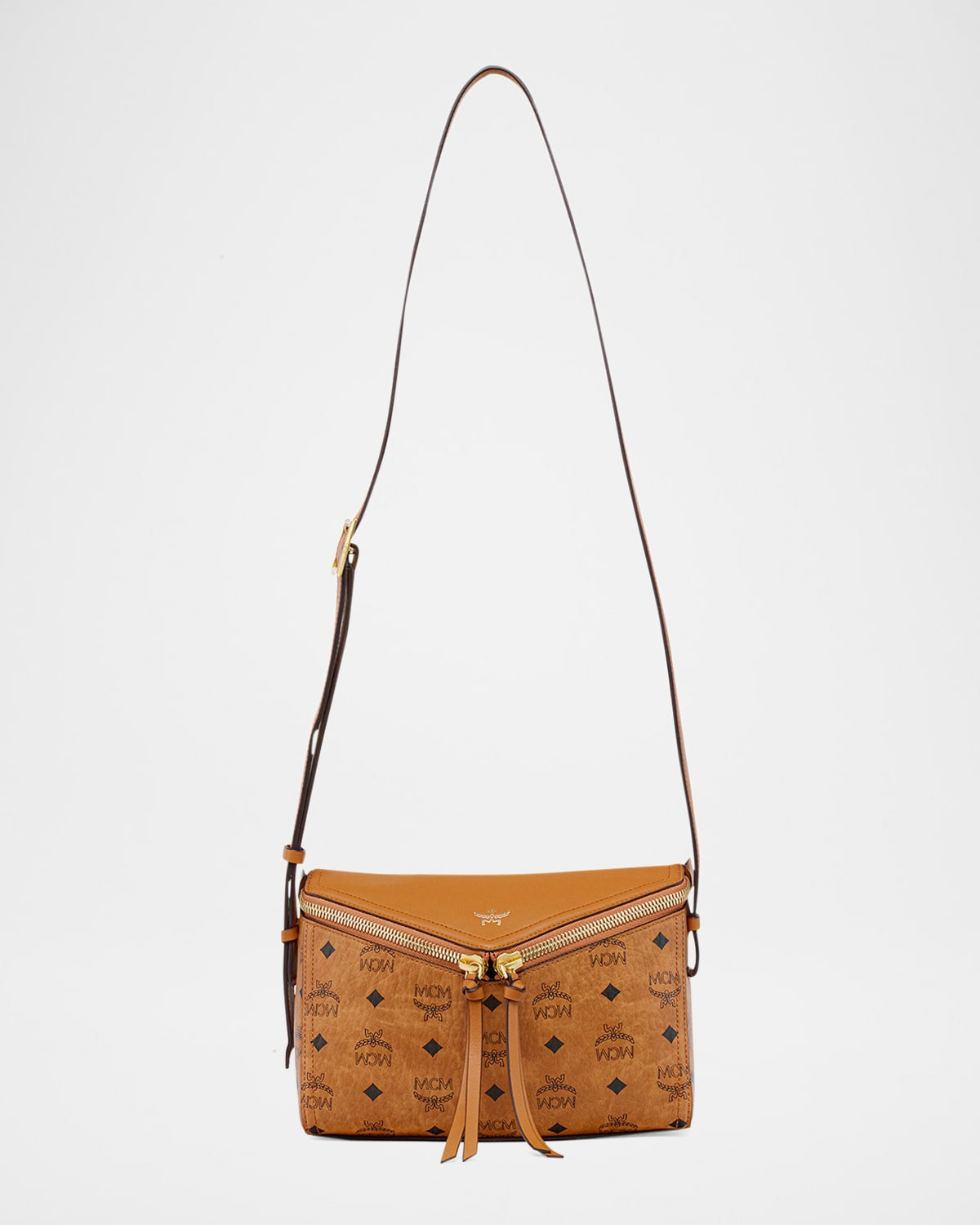 - MCM shoulder bag in Visetos faux leather (polyurethane), polyester, and cotton - Adjustable shoulder strap - Can be worn as a shoulder or crossbody bag - Two-way zip top closure - Interior, one zip pocket - Approx. 6.3"H x 9.4"W x 3.9"D - Imported