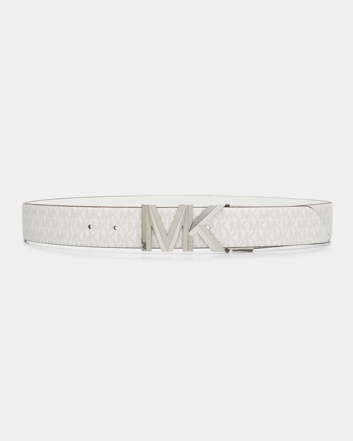 Michael Kors belt in dyed calf leather and nickel Features an all-over logo motif & nbsp; Reerses to solid black & nbsp; MK logo buckle & nbsp; Adjustable fit & nbsp; Imported
