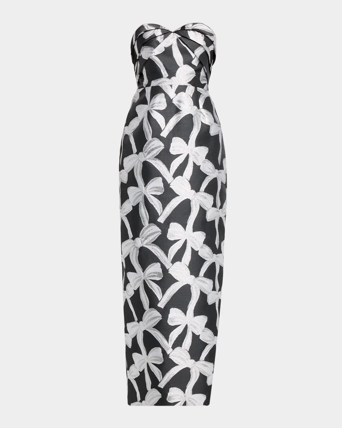 Donna Strapless Bow Jacquard Column Maxi Dress