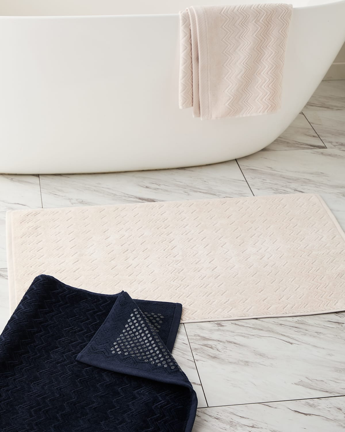 The Home Collection is one of the main expressions of the Missoni spirit. Colors and patterns dress up the house, making every space dynamic and original. Bath mat measures approx. 2' x 2'11" Cotton Machine wash cold Made in Portugal