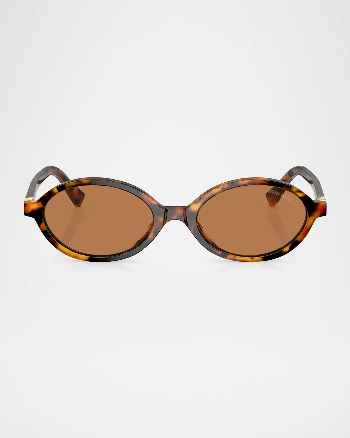 - Miu Miu "MU 04ZS" oval sunglasses in acetate and plastic - Solid lenses; logo on corner - Saddle nose bridge - Signature raised logo on temples - Thin, tapered arms - 100% UVA/UVB protection - Acetate/plastic - Spot clean - Made in Italy - Proposition 65 warning for California residents