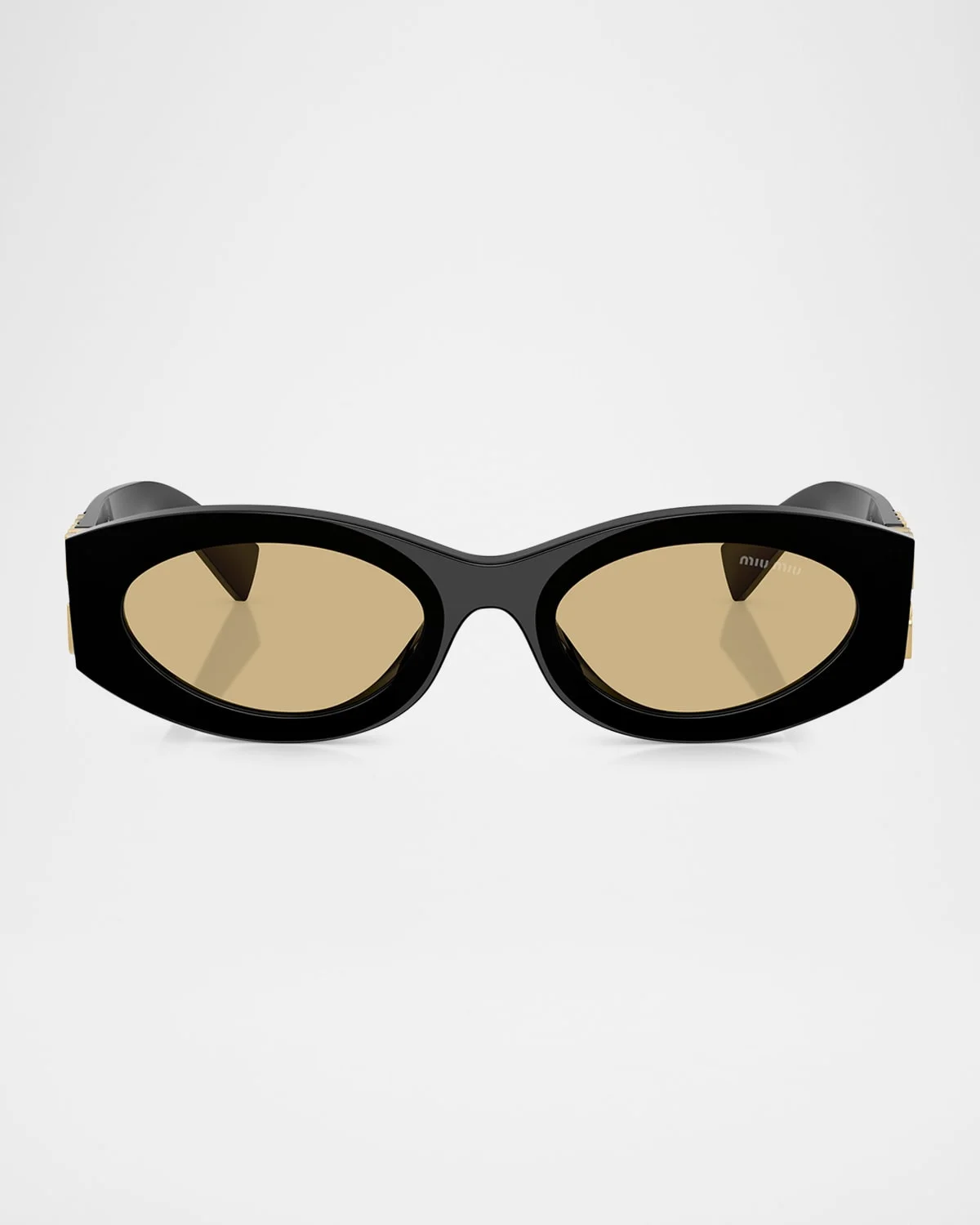 - Miu Miu "MU 11WS" fully-rimmed sunglasses feature a versatile oval frame - Eye/bridge/temple (in mm): 54-21-135mm - Monochromatic lenses - Saddle nose bridge - Stacked gold-tone logos on temples - Wide, tapered arms - 100% UVA/UVB protection - Acetate - Spot clean - Made in Italy - Proposition 65 warning for California residents