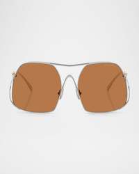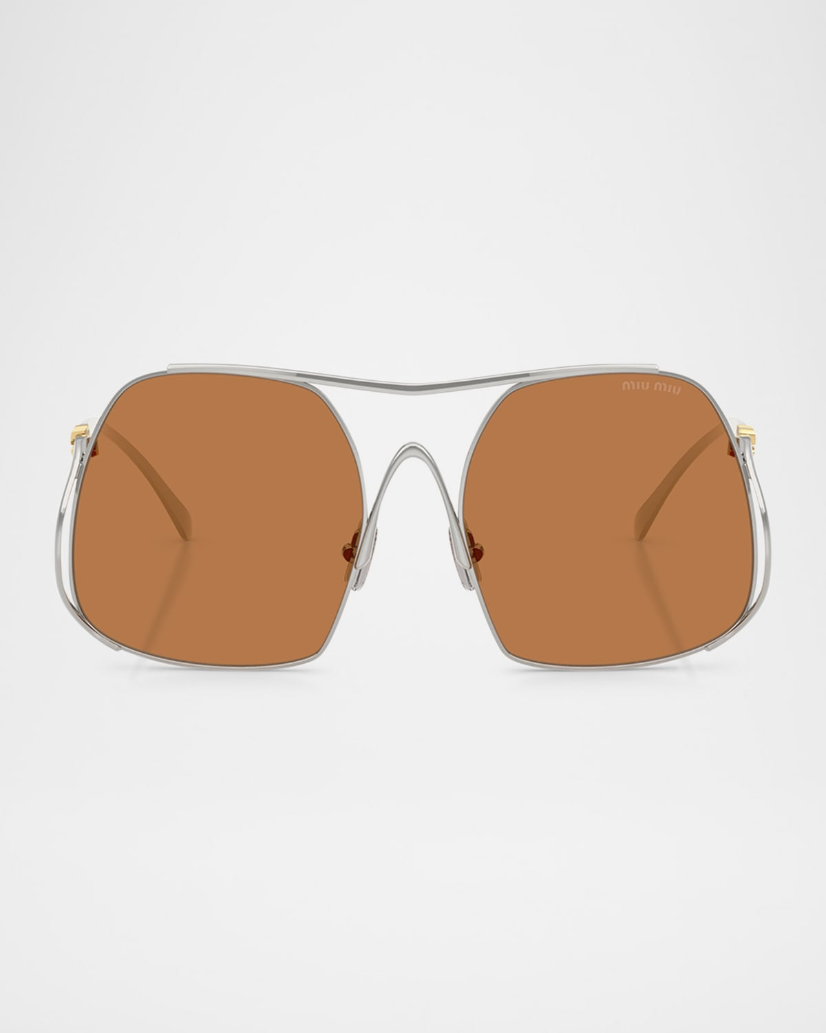 - Miu Miu sunglasses elevate any ensemble with oversized square lenses and a sleek double brow bar for a bold, modern edge. - Eye/bridge/temple (in mm): 57-18-140 - Monochromatic lenses - Adjustable nose pads - Vertical logo on temples - Thin, tapered arms - 100% UVA/UVB protection - Steel/plastic - Spot clean - Made in Italy - Proposition 65 warning for California residents