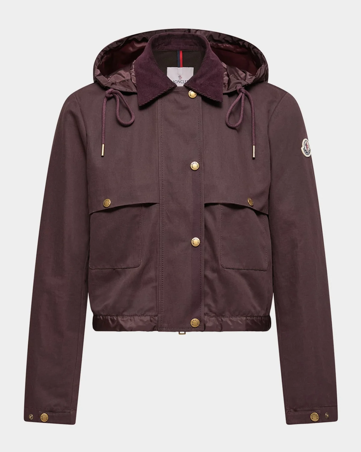 Designed with a slightly structured silhouette, the "Aconitum" jacket by Moncler is crafted from a lightweight cotton-linen blend and balances sporty elements with a classic tailored collar for a modern feel. Features a signature embroidered logo patch on the left sleeve & nbsp; Detachable drawstring hood & nbsp; Long sleeves with adjustable snap cuffs Front snap pockets Classic fit Elasticized hem Two-way zip-front with snap-over placket Polyester/cotton/nylon/polyamide Lining: Nylon Machine wash cold Imported SIZE & FITModel measurements: 5 & apos;10" tallModel is wearing a US size 4/Small