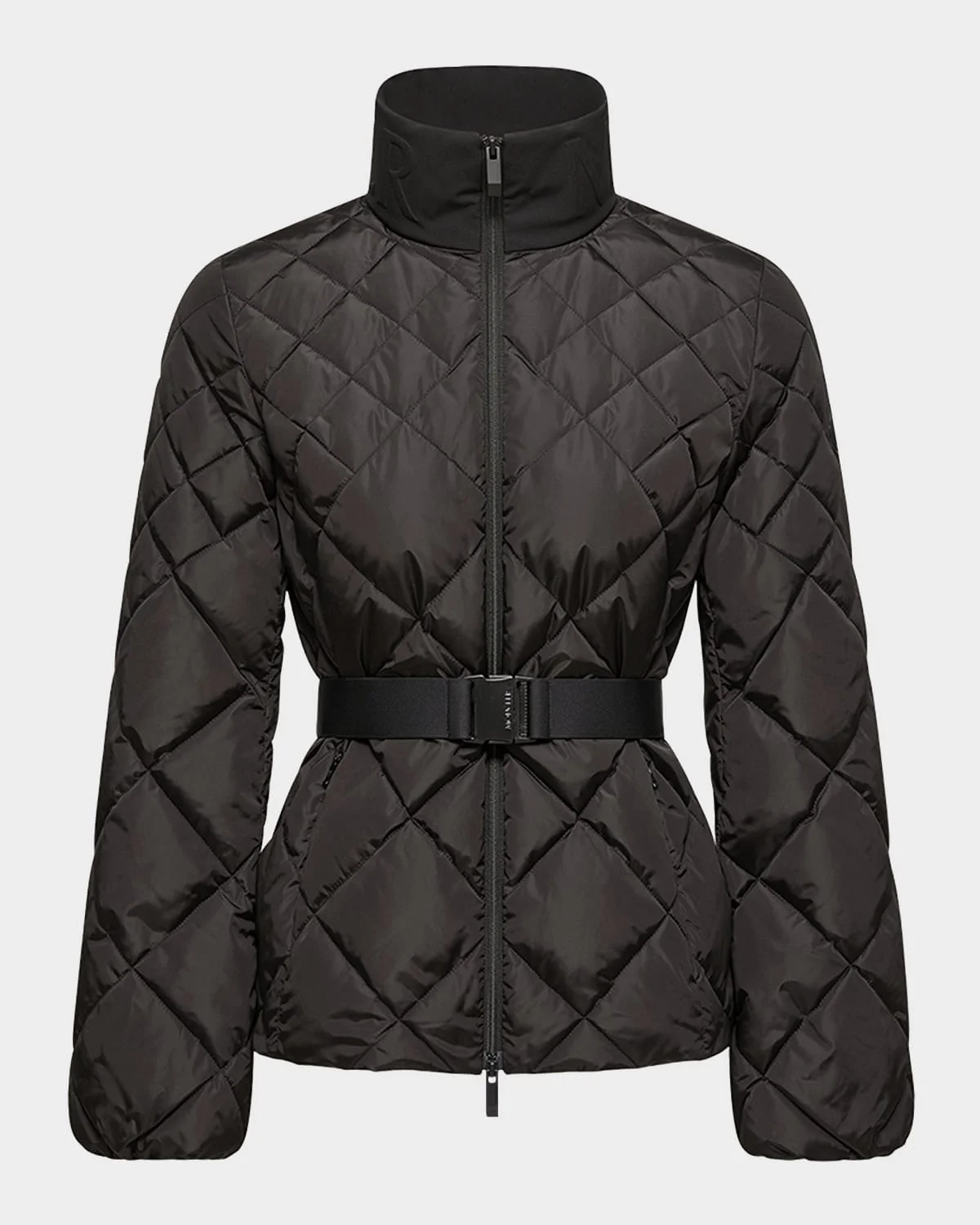Designed with intricate geometric quilting, the "Balsamine" jacket by Moncler is crafted from water-repellent nylon and showcases a sleek silhouette with an adjustable belt to cinch the waist. Stand collar with raised logo detail & nbsp; Long sleeves with elastic cuffs Invisible & nbsp;zip pockets & nbsp; Slim fit Hem sits at the hip & nbsp; Two-way zip-front & nbsp; Polyester/elastane/nylon/polyamide Fill: Down/feather & nbsp; Lining: Nylon Machine wash cold Imported This product contains perfluoroalkyl and polyfluoroalkyl substances (PFAS). For more information, please visit the manufacturer's website.