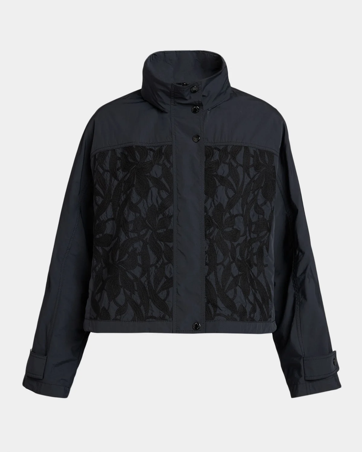 Embroidered with a vine motif, the "Epimedium" jacket by Moncler is crafted from & nbsp;technical fabric and features a detachable drawcord hood for versatile styling. Features a signature embroidered logo patch & nbsp; Stand collar Long sleeves with button cuffs Relaxed fit & nbsp; Hem falls to the hip & nbsp; Two-way zip-front with snap & nbsp;placket & nbsp; Cotton/nylon/polyamide/polyester Lining: Nylon Hand wash or dry clean Made in Italy This product contains perfluoroalkyl and polyfluoroalkyl substances (PFAS). For more information, please visit the manufacturer's website.