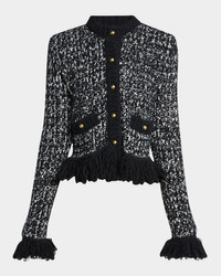 - Moncler marle wool cardigan finished with fringe trim - Round neckline - Long sleeves with fringe cuffs - Patch pockets - Classic fit - Fringe hem - Button-front - Wool/nylon/polyamide/cotton - Lining: Polyester - Professional cleaning recommended - Made in Italy