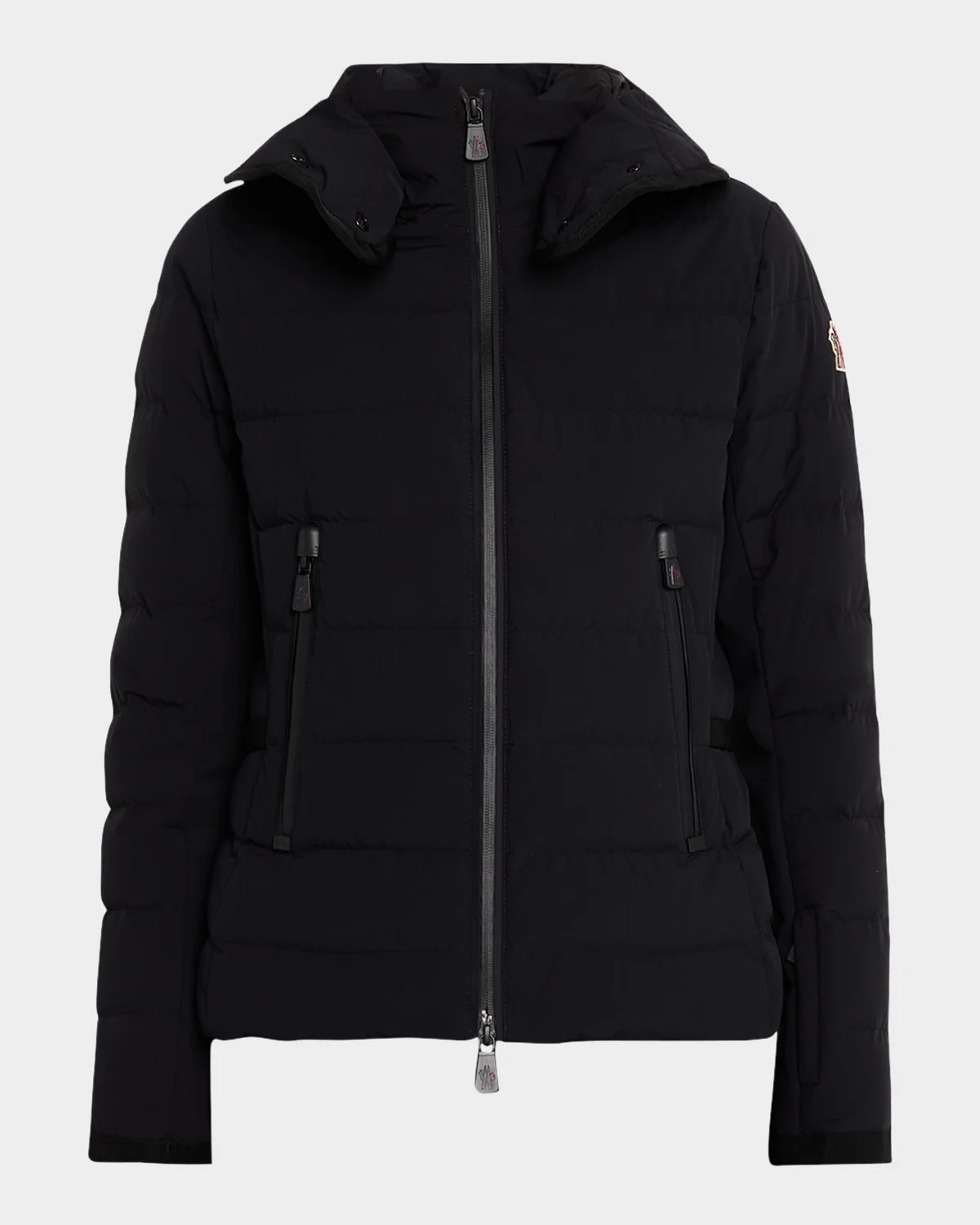 Moncler Grenoble "Lamoura" quilted ski jacket crafted from 2L fourway stretch technical poplin Waterrepellent, windproof, and breathable Adjustable drawstring hood Stand collar with snaps Long sleeves with stretchjersey wrist gaiters; ski pass zip pocket Outer pockets with YKK® AquaGuard® highly waterresistant zip closure Inner pocket with YKK® AquaGuard® highly waterresistant zip closure Slim fit Inner powder skirt YKK® AquaGuard® highly waterresistant twoway zipfront Nylon/polyamide/polyester/rubber Fill: Down/feather Lining: Nylon Hand wash Imported