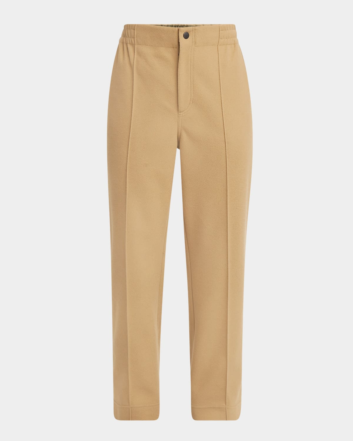 - Tonal piping and a brushed finish add texture to these Moncler Grenoble sweatpants. - Elasticized waistband - Regular rise - Slip pockets; three back snap pockets - Embroidered logo at the back - Straight legs - Full length - Button/zip closure - Polyester/viscose/acrylic - Hand wash - Made in Italy