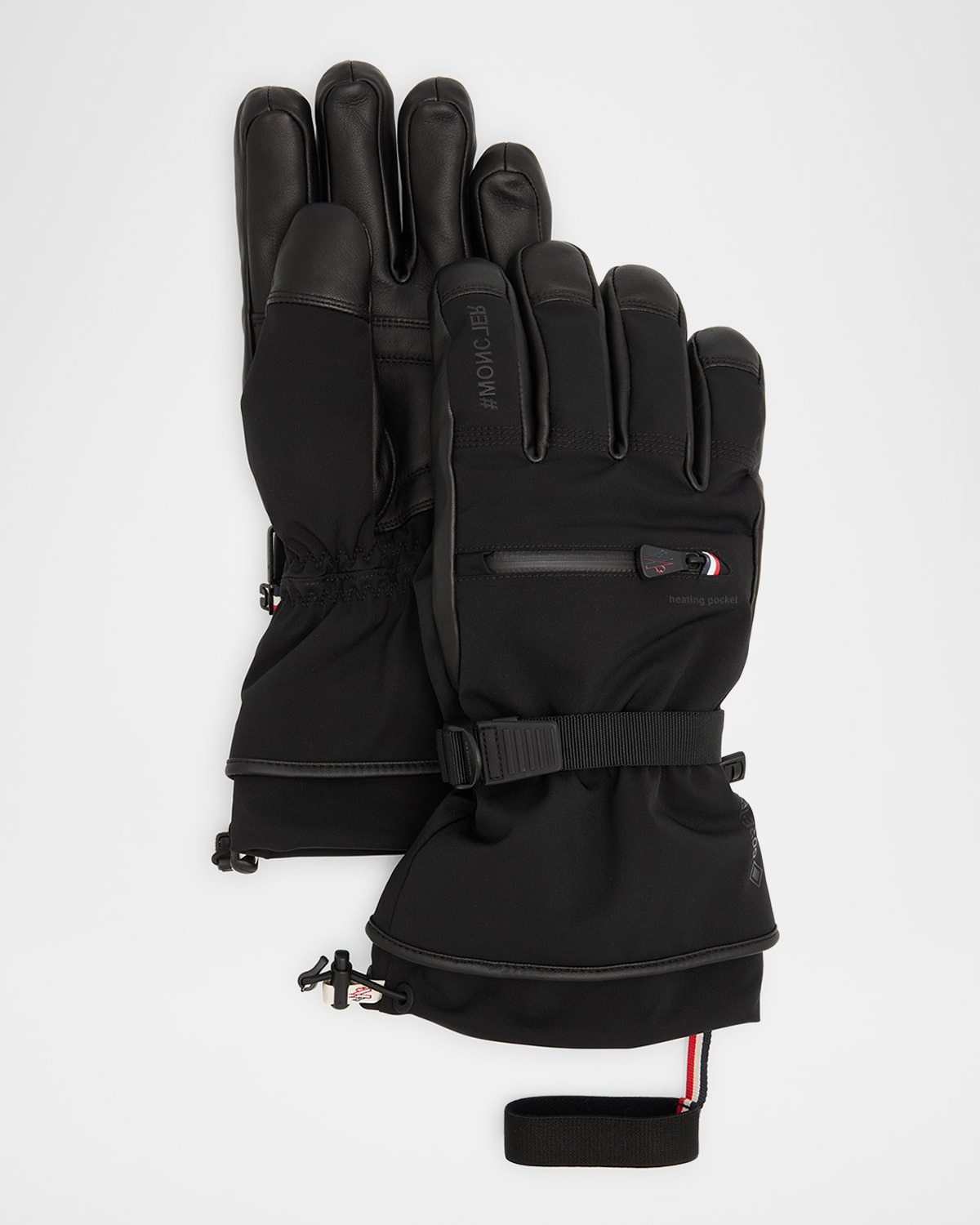 - Moncler Grenoble insulated gloves - Water-resistant polyester - Contrasting leather palms - Zipped heating-pad pocket - Buckled cuff - Lining: Nylon - Dry clean - Imported - To determine your glove size, measure the circumference of your hand around your knuckles, excluding your thumb. Then pick your glove size based on the measurements below. For the most comfortable fit, you may want to go up a size if you fall in between these numbers. - S=8 inches - M=8 1/2 to 9 inches - L=9 1/2 to 10 inches