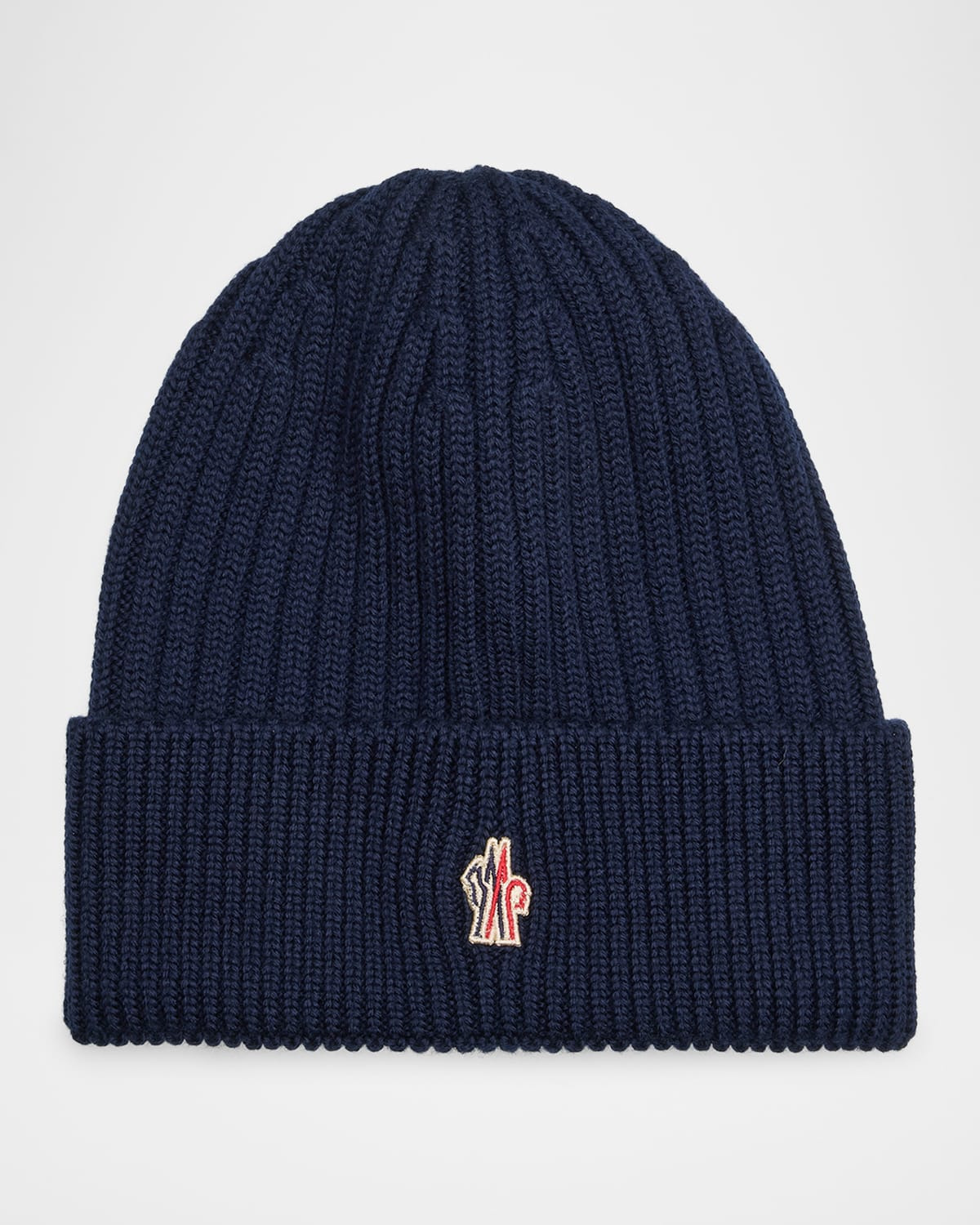 - Moncler Grenoble ribbed beanie hat - Folded cuff with logo patch - Virgin wool - Hand wash - Made in Italy