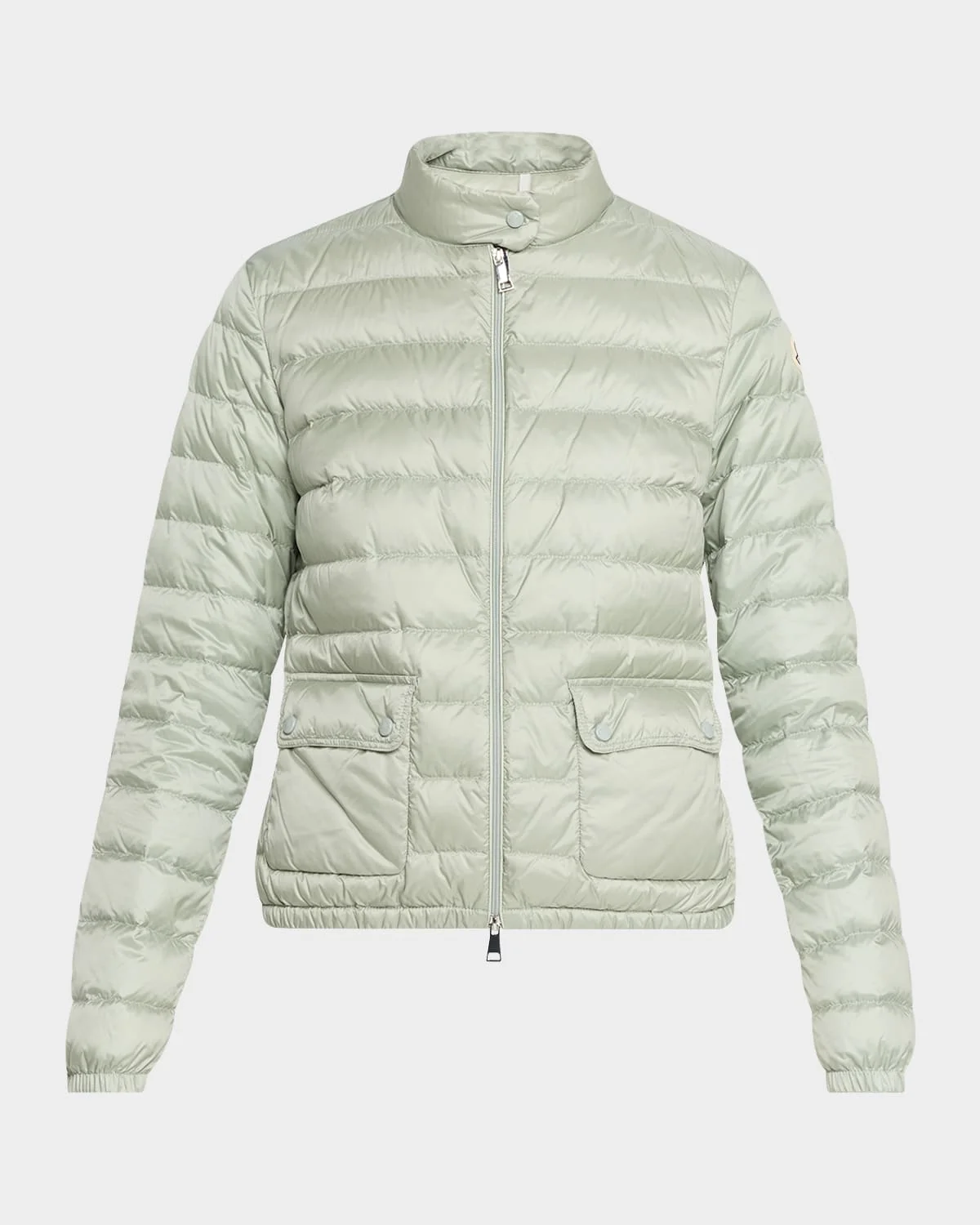 Crafted from signature nylon laque, the "Lans" jacket by Moncler is adorned with tonal hardware and premium down insulation for a seamless, warm silhouette. Features signature embroidered logo patch on the left sleeve Stand collar; snap closure Long sleeves with elastic cuffs Flap pockets Classic fit Hem sits at the hip Twoway zipfront Nylon/polyamide Fill: Down/feather Lining: Polyester Hand wash Imported