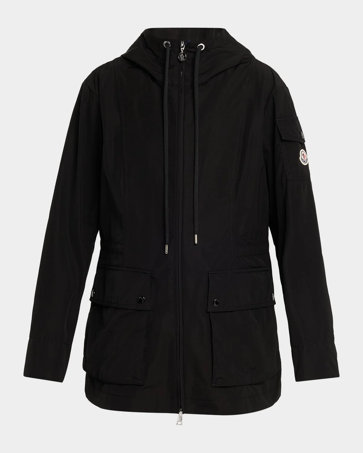 The "Leandro" parka by Moncler is crafted from technical poplin and boasts a feminine silhouette that can be cinched with an adjustable, interior drawstring. Signature embroidered logo patch on the left sleeve & nbsp; Hooded drawstring neckline & nbsp; Long sleeves; left sleeve pocket Snap patch pockets Classic fit Hem falls to the hip Two-way zip-front & nbsp; Polyester/cotton Lining: Polyester/cotton Dry clean or machine wash cold & nbsp; Made in Italy This product contains perfluoroalkyl and polyfluoroalkyl substances (PFAS). For more information, please visit the manufacturer's website.