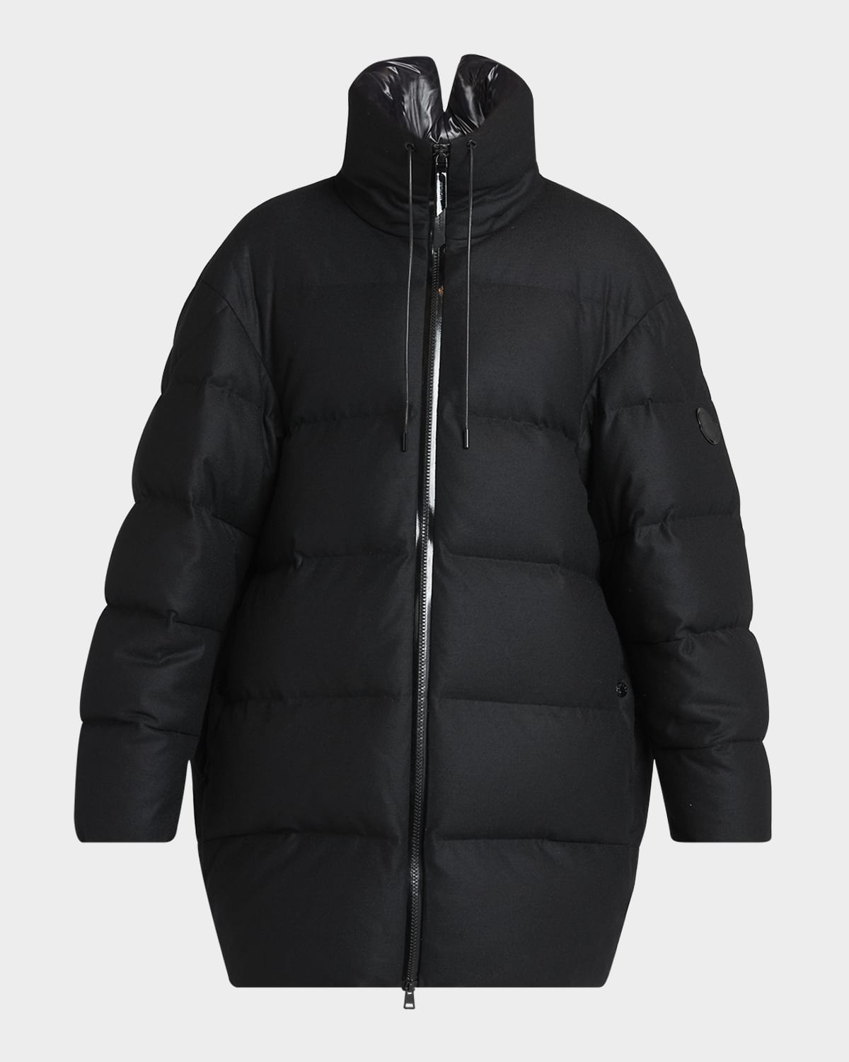 - Crafted from signature longue saison with a water-repellent finish, the "Maarutha" down-filled coat from the Moncler Genius collection features an oversized silhouette that seamlessly fuses technical performance with comfort. - Features a signature tonal logo patch on the left sleeves - Stand collar with adjustable drawstrings - Dropped shoulders - Long sleeves - Relaxed, cocoon-style fit - Mid-thigh length - Two-way zip-front - Wool/nylon/polyamide - Fill: Feather/down - Lining: Nylon - Machine wash cold - Imported