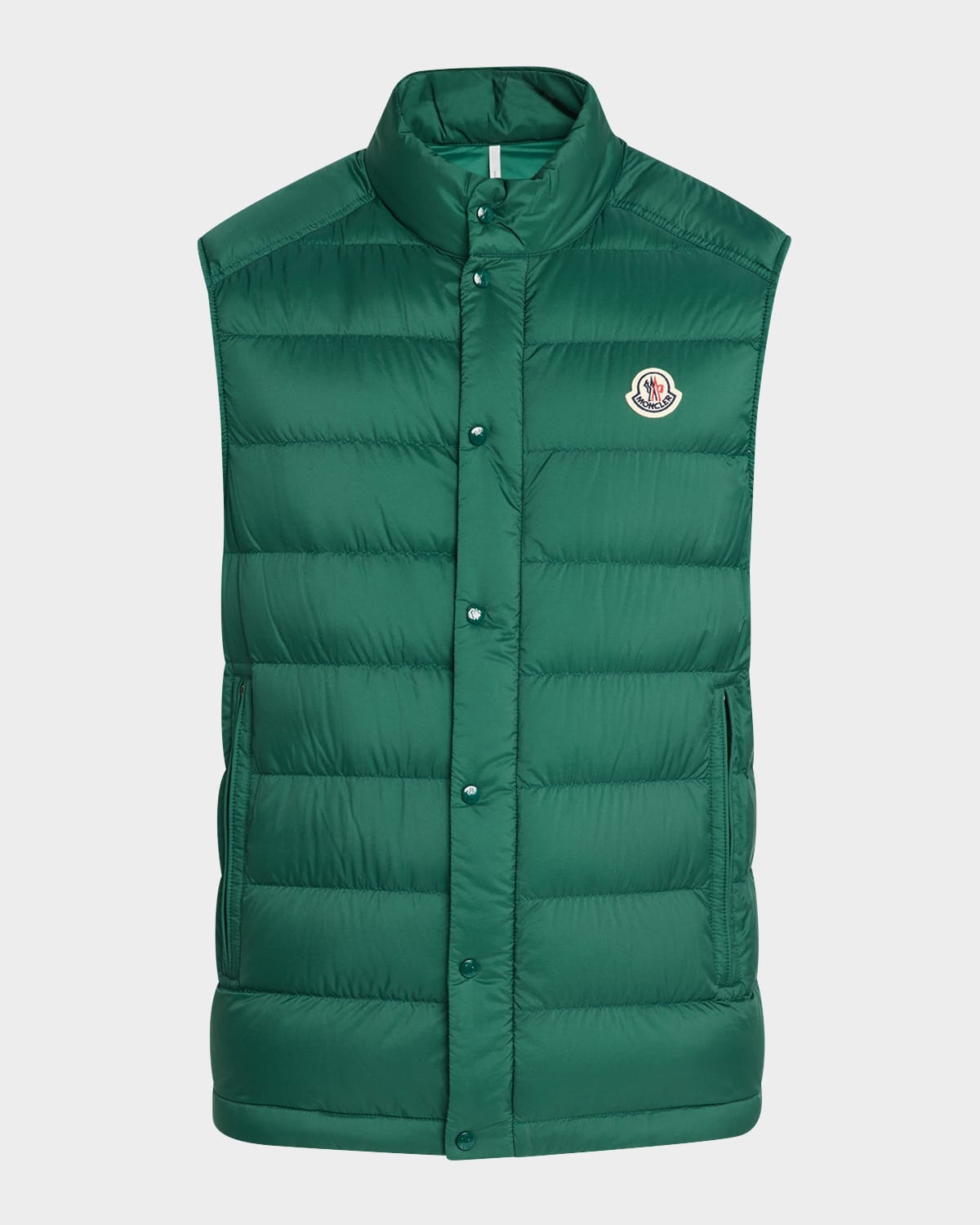 - Moncler "Barthe" puffer vest - Mock neckline - Snap front closure - Logo patch at chest - Welted zip pockets - Down/feather fill - Nylon/polyamide - Lining: Nylon - Hand wash - Imported