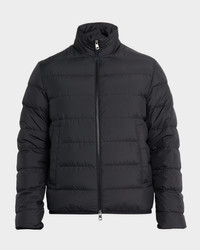 - Padded with down/feather fill, the "Baudinet" puffer jacket by Moncler offers a versatile design for everyday warmth - Stand collar; two-way zip closure - Signature logo patch at left sleeve - Long sleeves; elastic cuffs - Side zipped pockets - Classic fit - Mid-length - Polyester - Lining: Polyester - Hand wash - Made in Romania