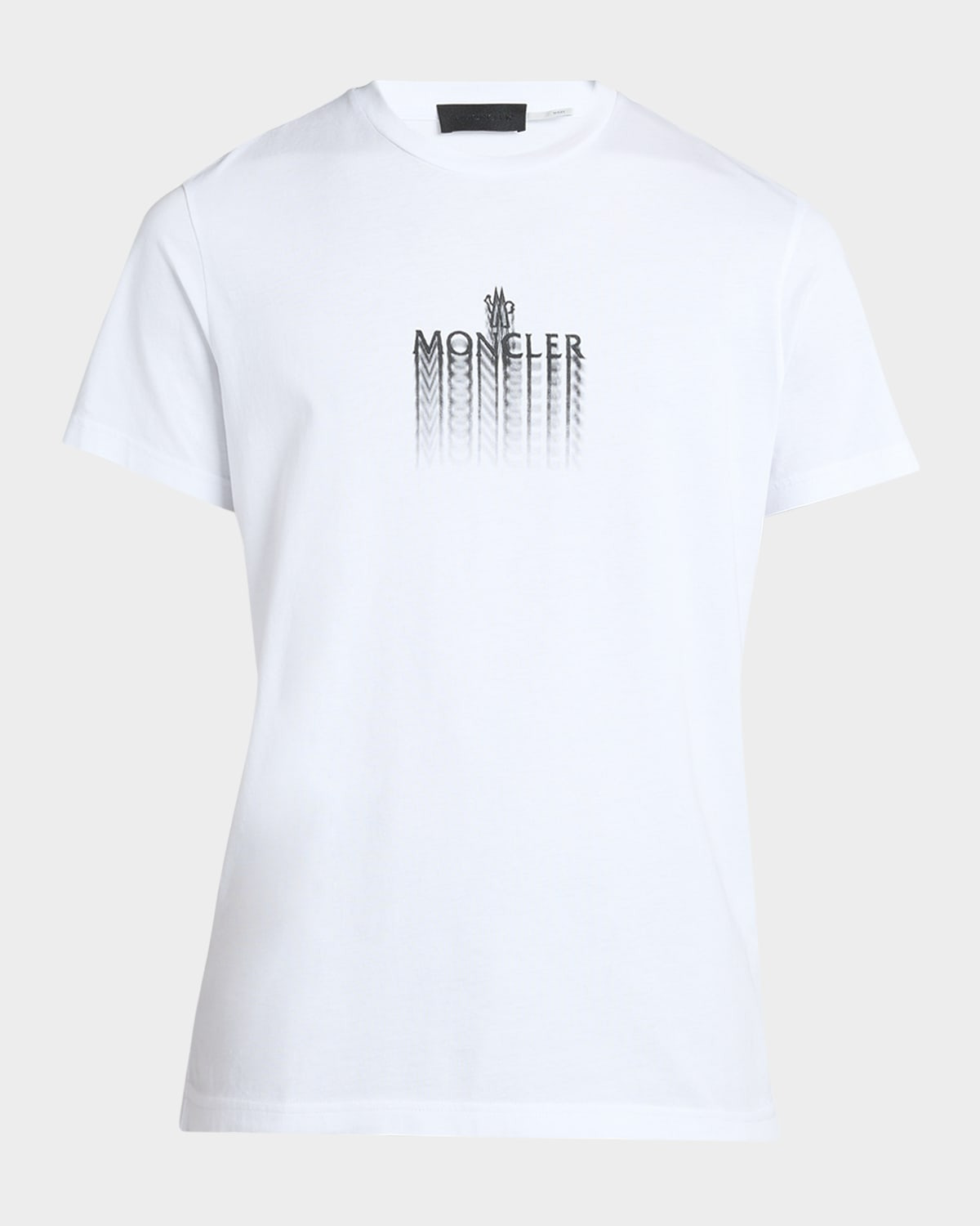 - Moncler T-shirt featuring a blurred logo on the chest - Crew neckline - Short sleeves - Logo emblem on left sleeve - Pullover style - Cotton - Imported