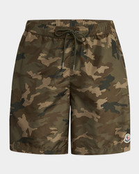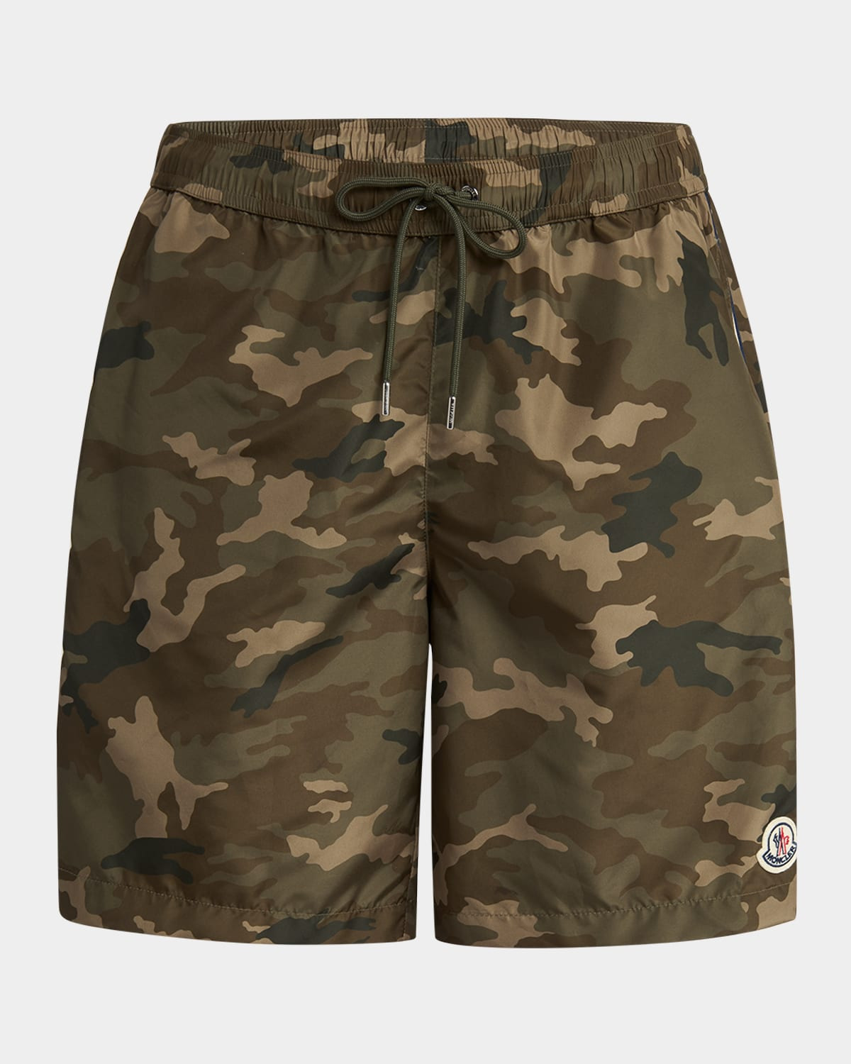 - Moncler swim shorts in an all-over camouflage print - Features signature embroidered logo patch at hem - Regular rise - Elasticized drawstring waist - Side pockets; back flap pockets - Loose fit - Pull-on style - Polyester - Lining: Nylon - Hand wash - Imported